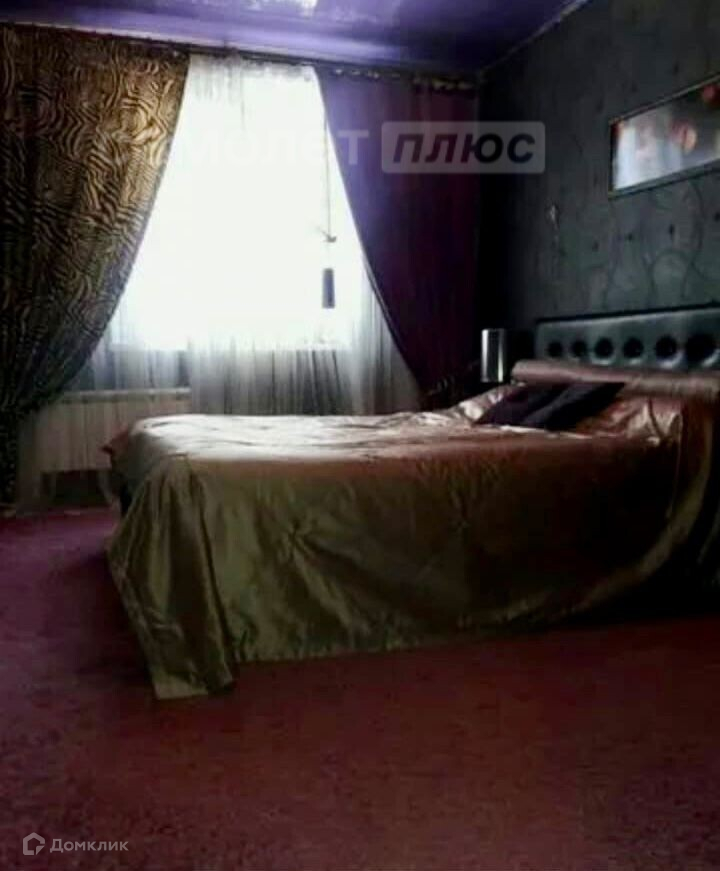 - В спальне: ламинат, стены оклеены обоями, натяжной потолок, окно евро, выходит во двор;