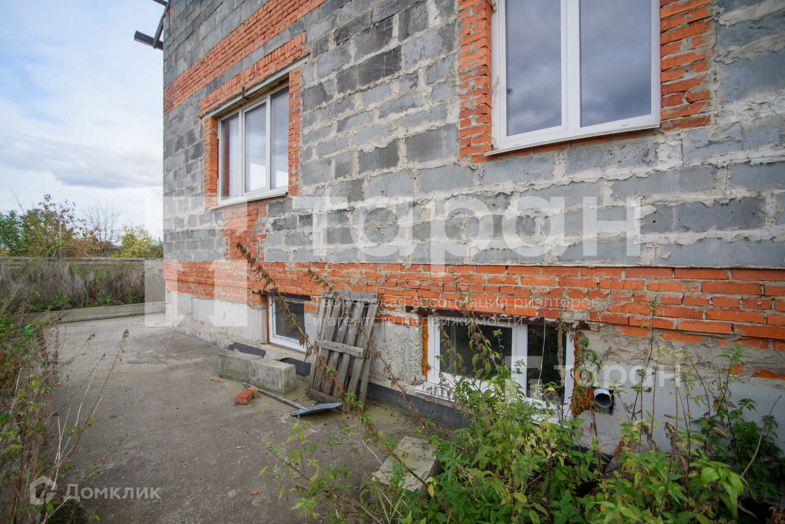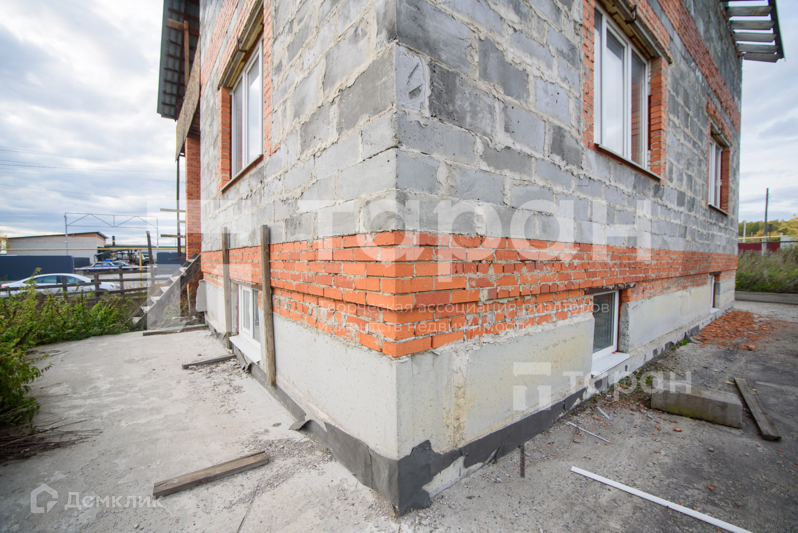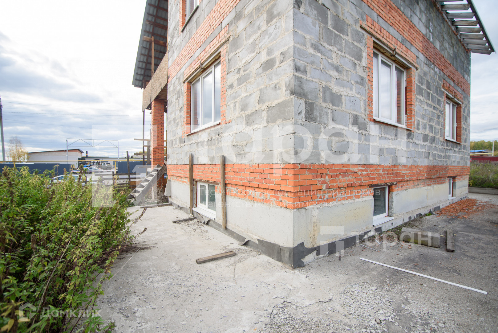 Фундамент, коробка, евроокна установлены.