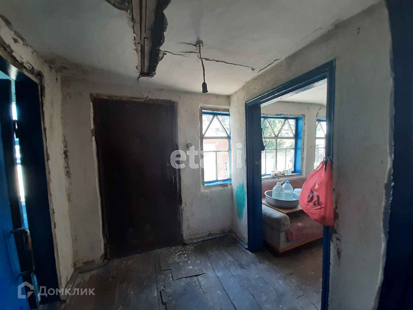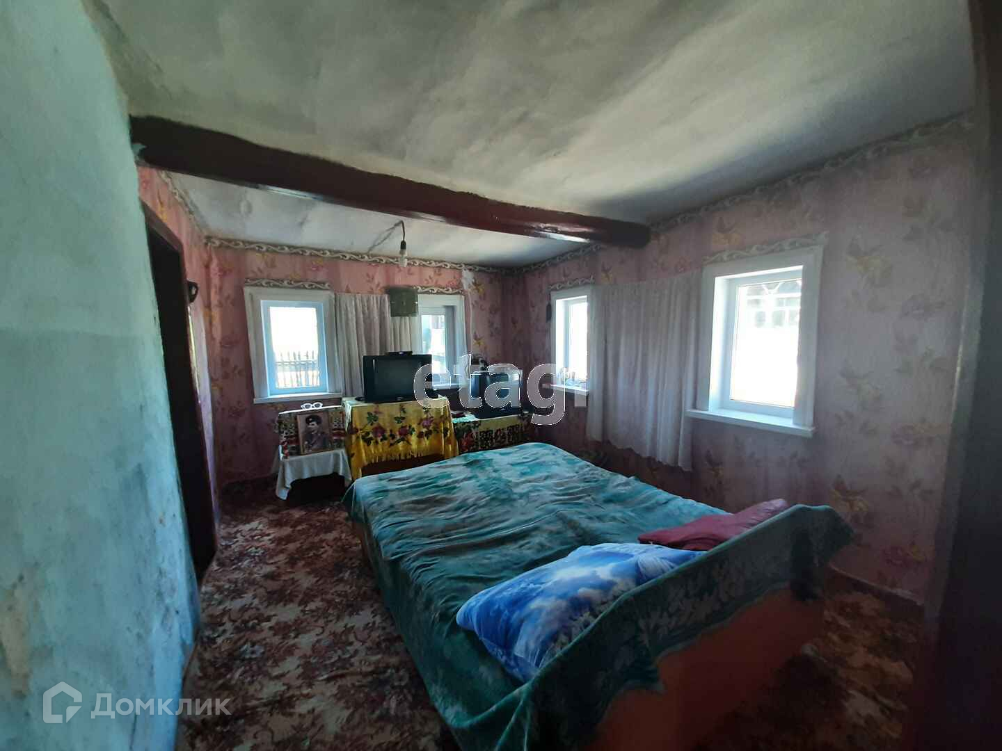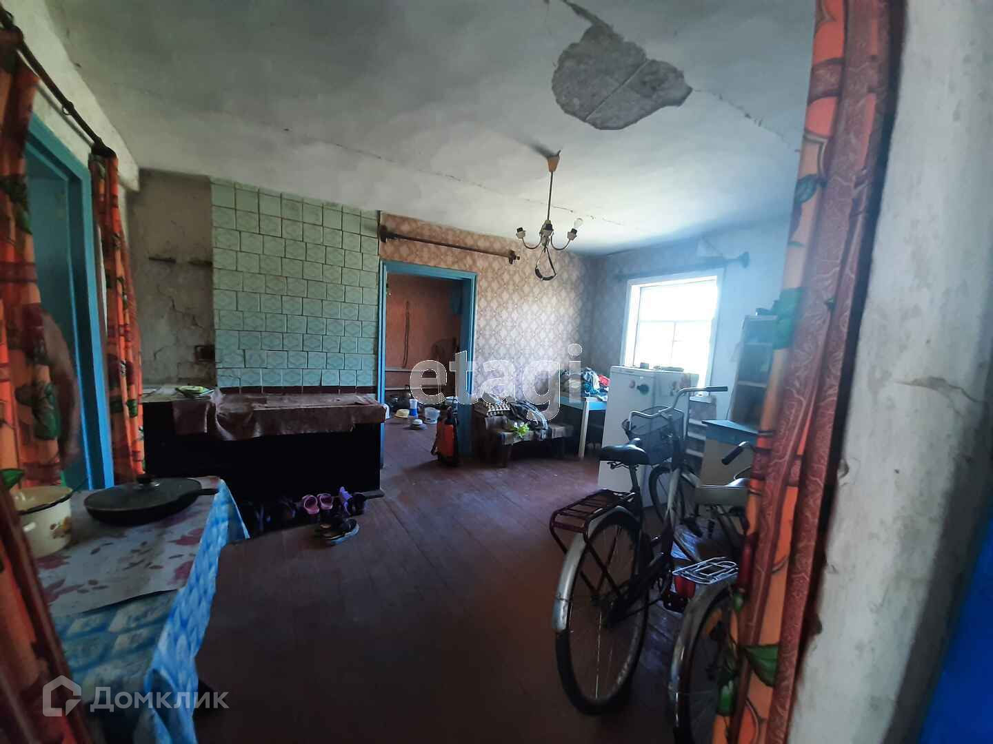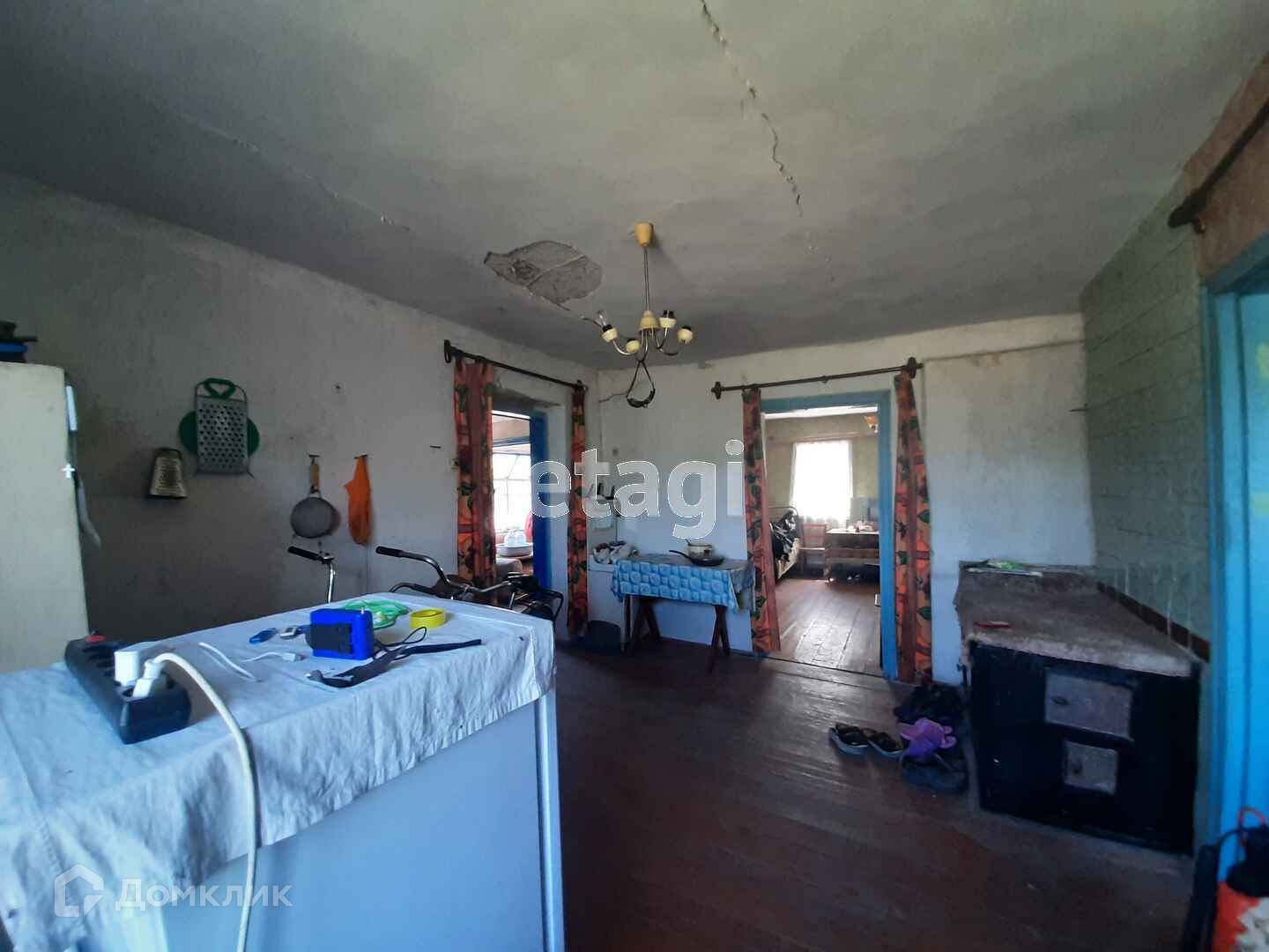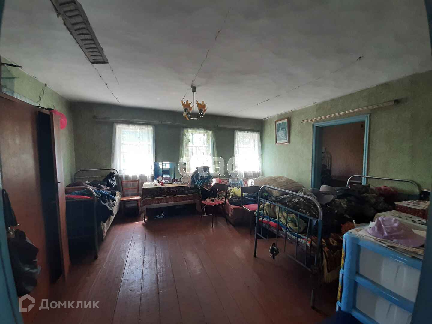 В доме четыре жилых комнаты, прихожая, кухня, ванная комната. Пол и окна деревянные. Потолки высокие.