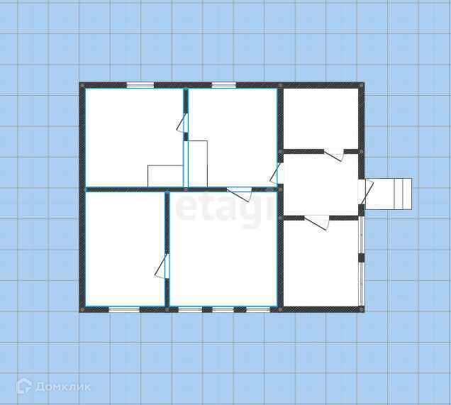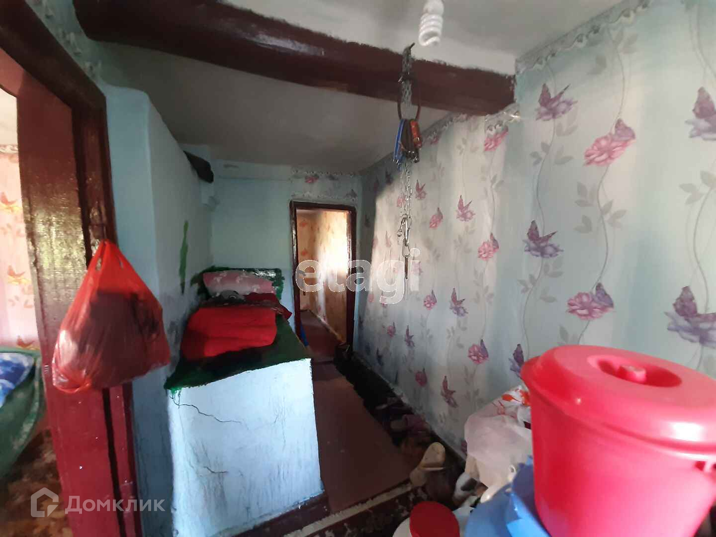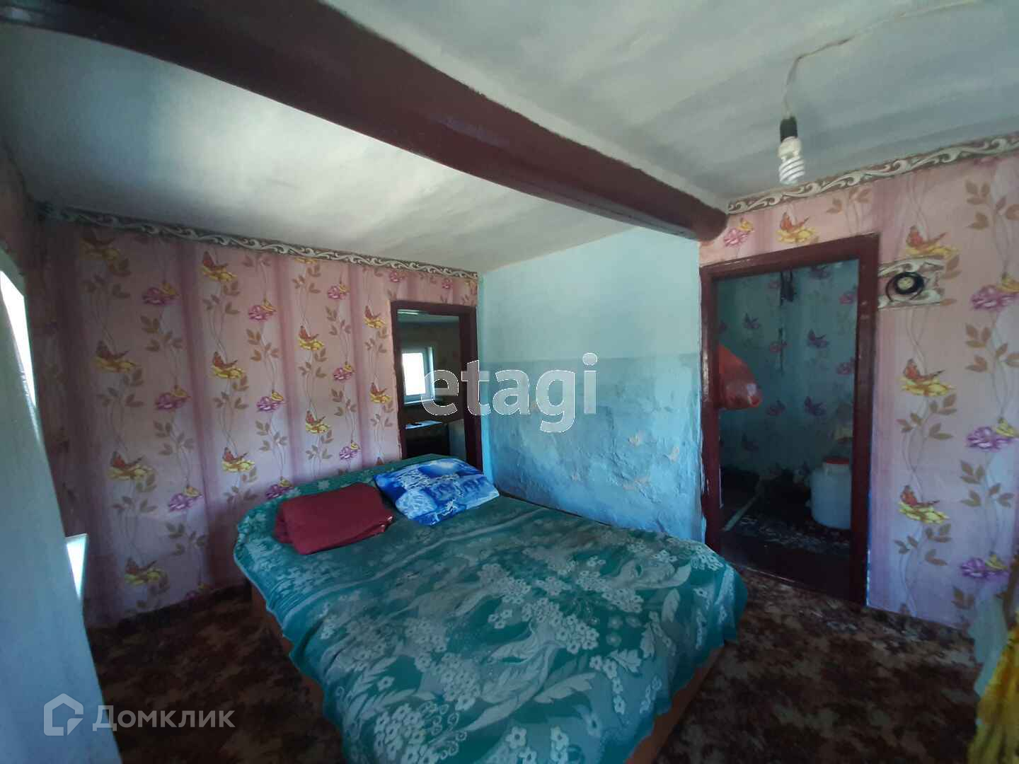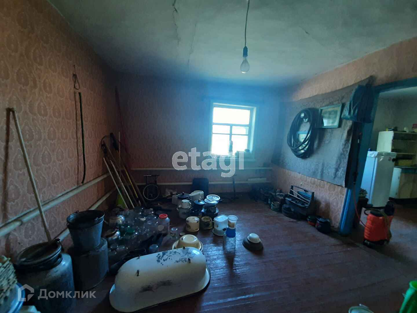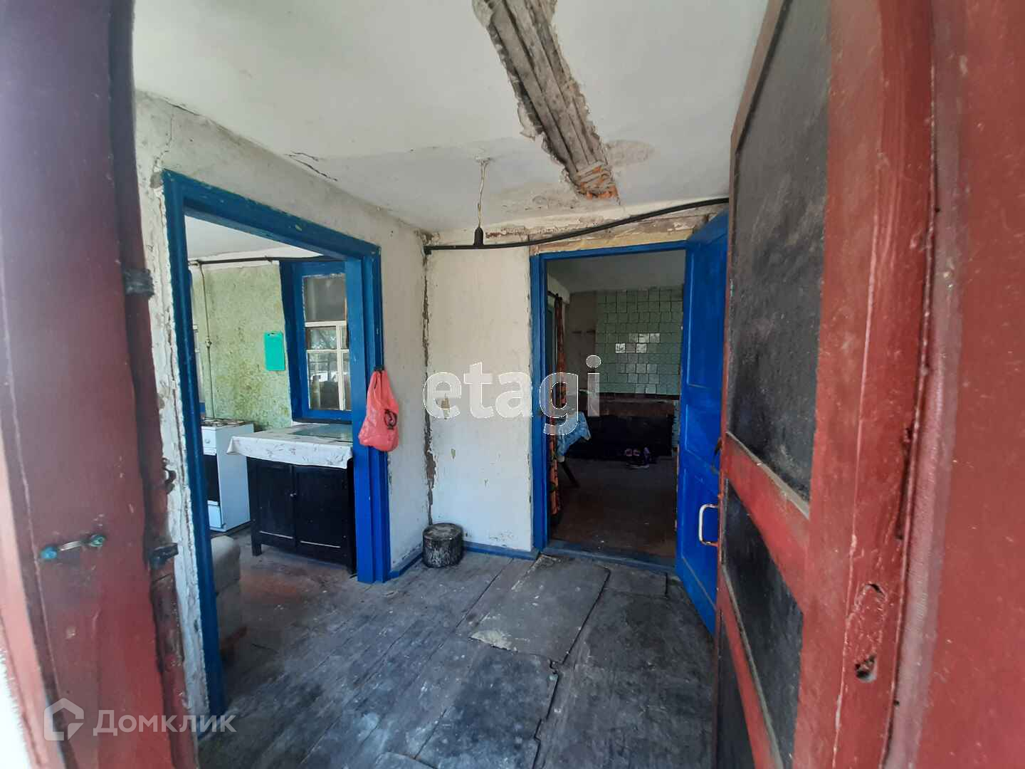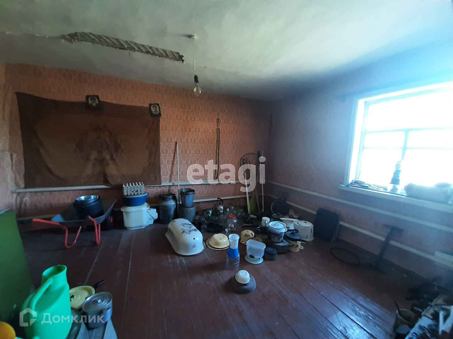 В доме четыре жилых комнаты, прихожая, кухня, ванная комната. Пол и окна деревянные. Потолки высокие.