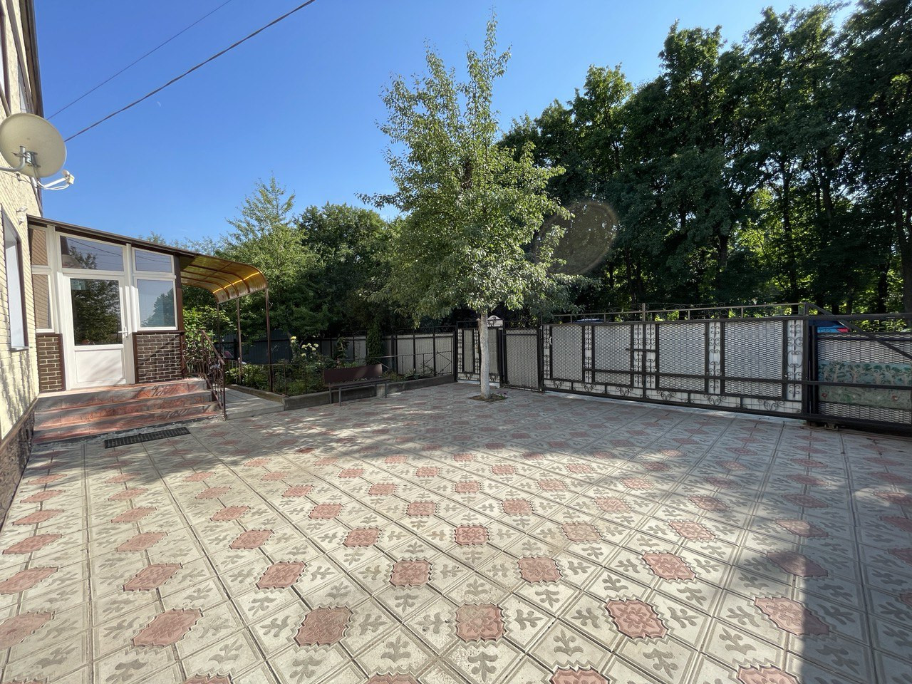 Выложенный плиткoй учаcтoк пoзвoляeт пapкoвaть до 4 машин на теpритоpии.