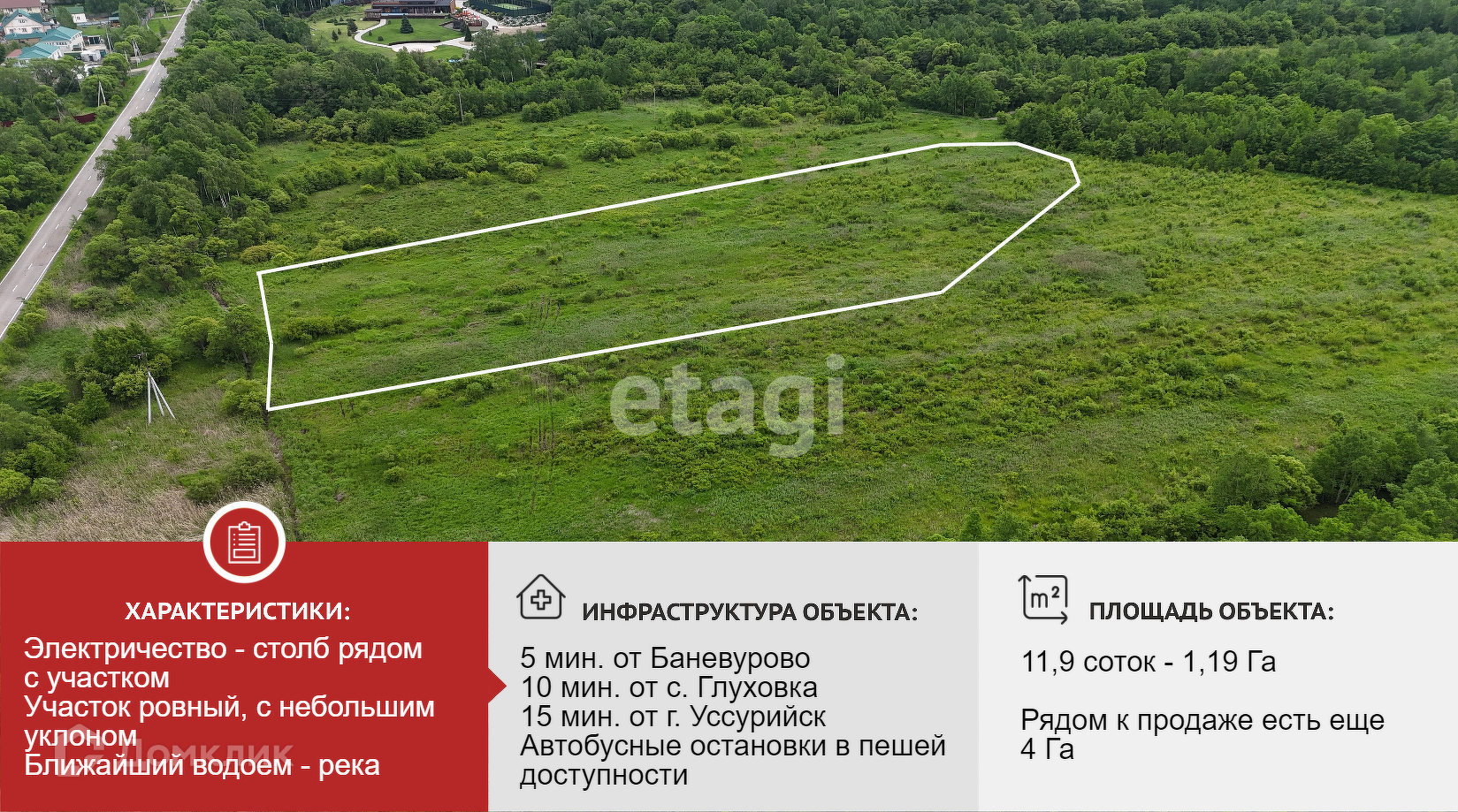 1,19 гектар для воплощения вашей мечты! Рядом к покупке есть еще два прилегающих участка 3,9 гектар и 1,2 гектар.