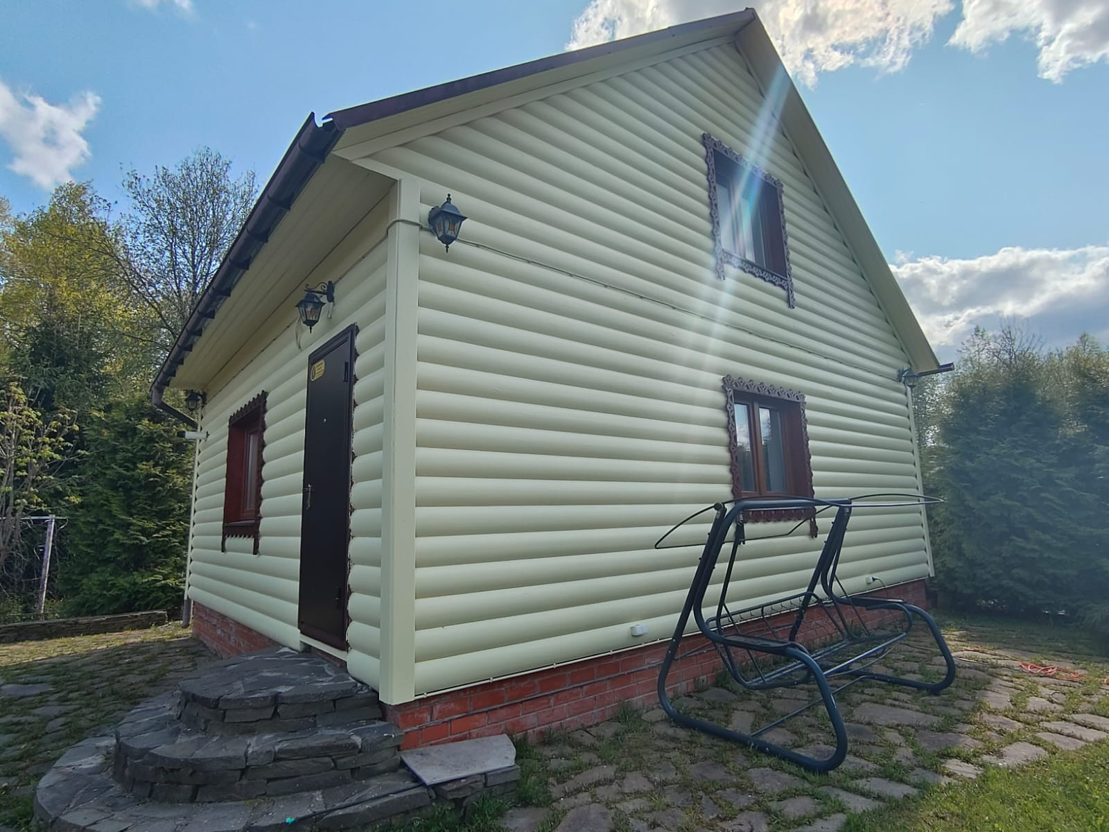 На участке также есть гостевой дом с баней общей площадью 85,9 кв. м, 1-й этаж - из блоков, 2-й этаж - деревянный. В гостевом доме на 1-м этаже - сауна 4 кв. м, кухня 8,1 кв. м, гостиная 18 кв. м, на 2-м этаже - 1 большая комната 43,9 кв. м. Гостевой дом полностью с ремонтом, снаружи обшит блокхаусом, кровля металлочерепица.