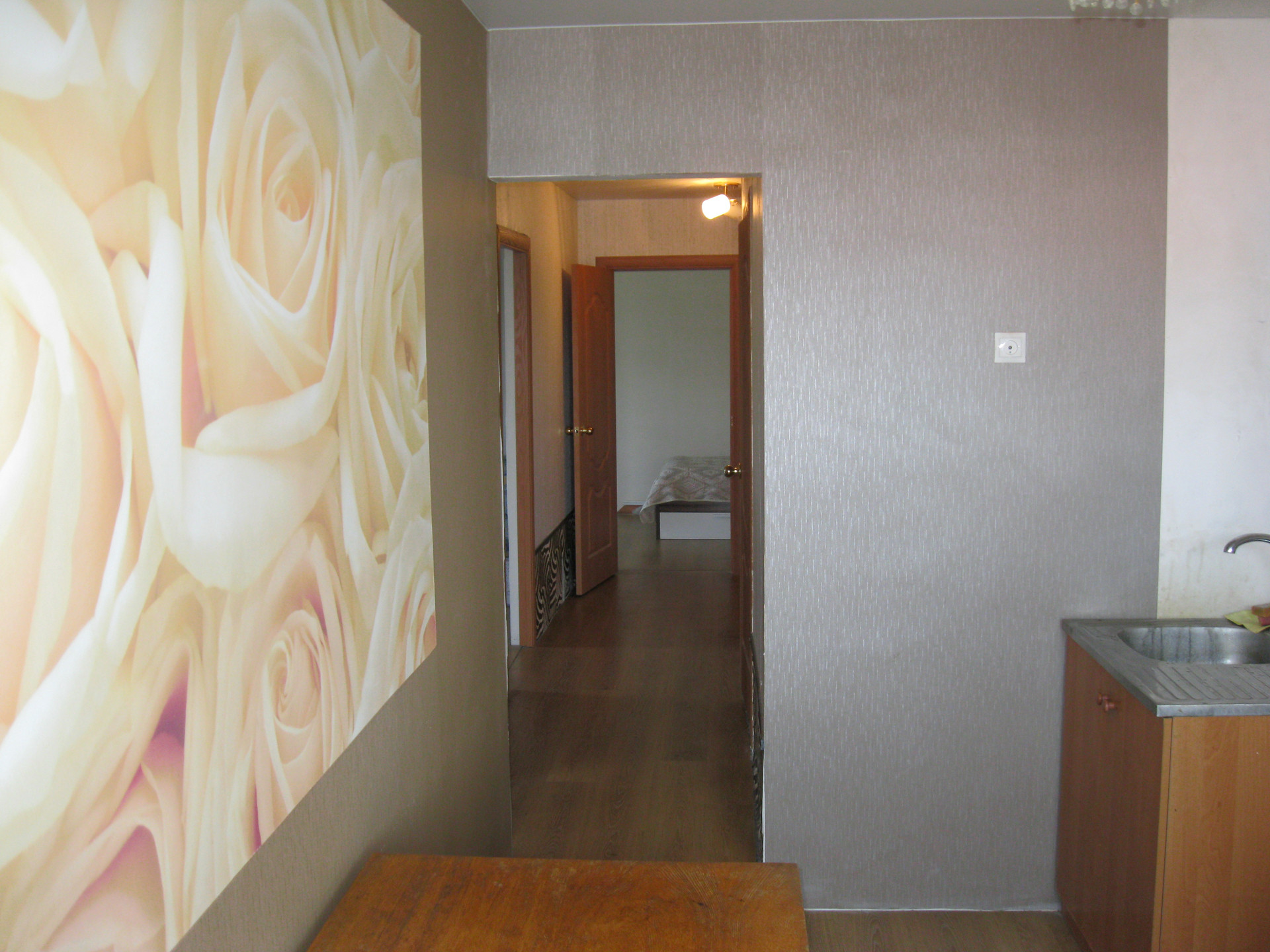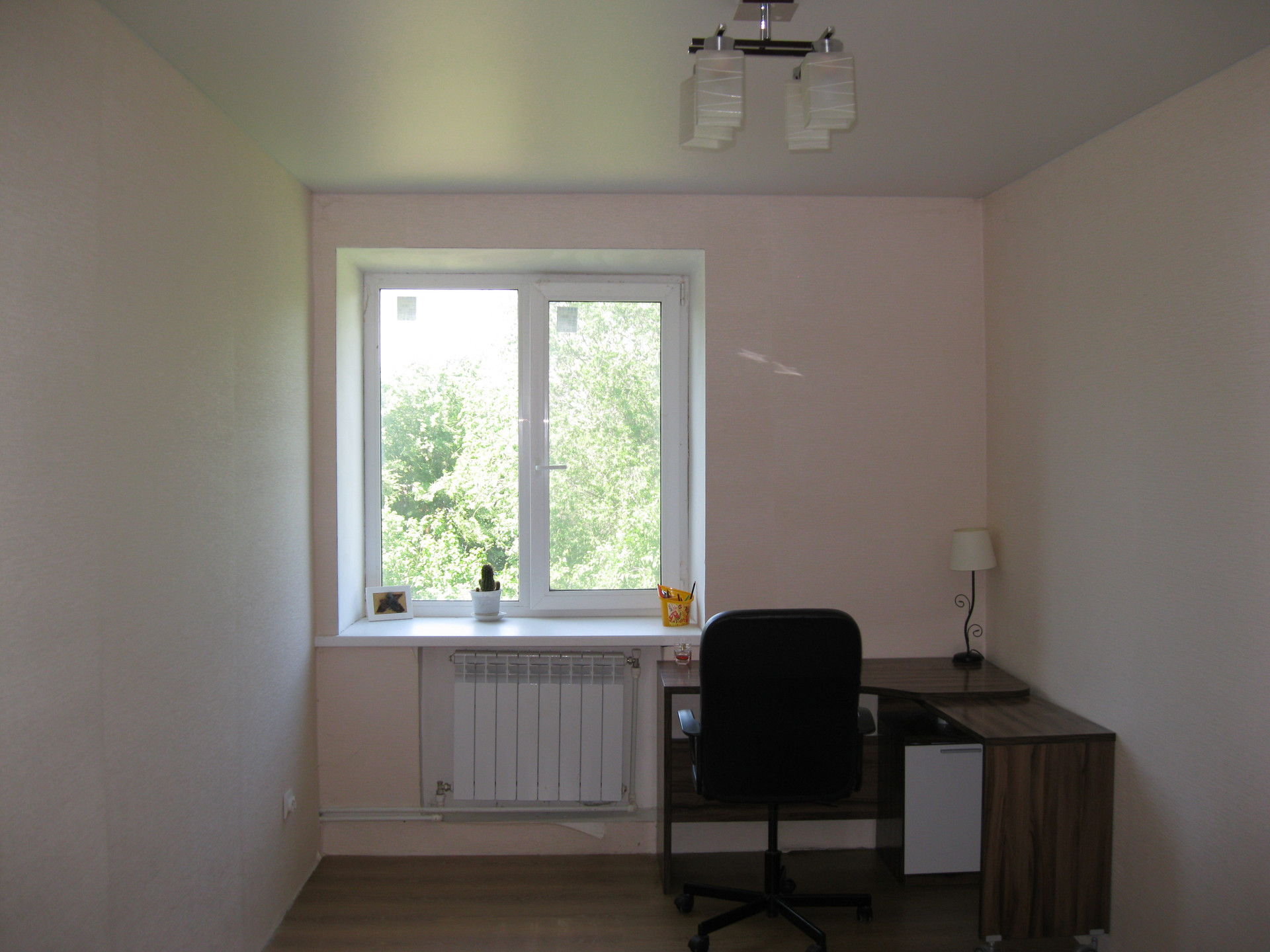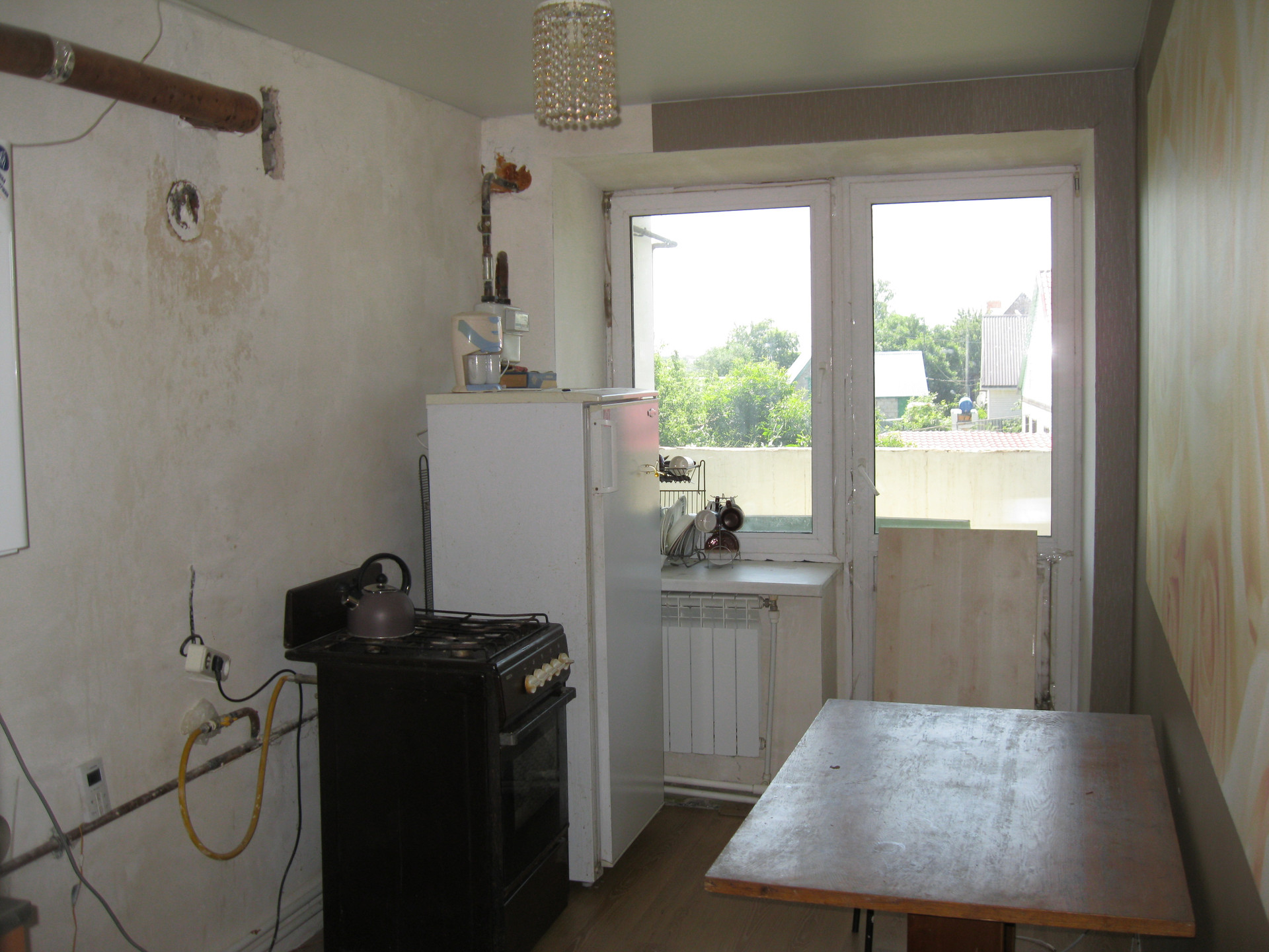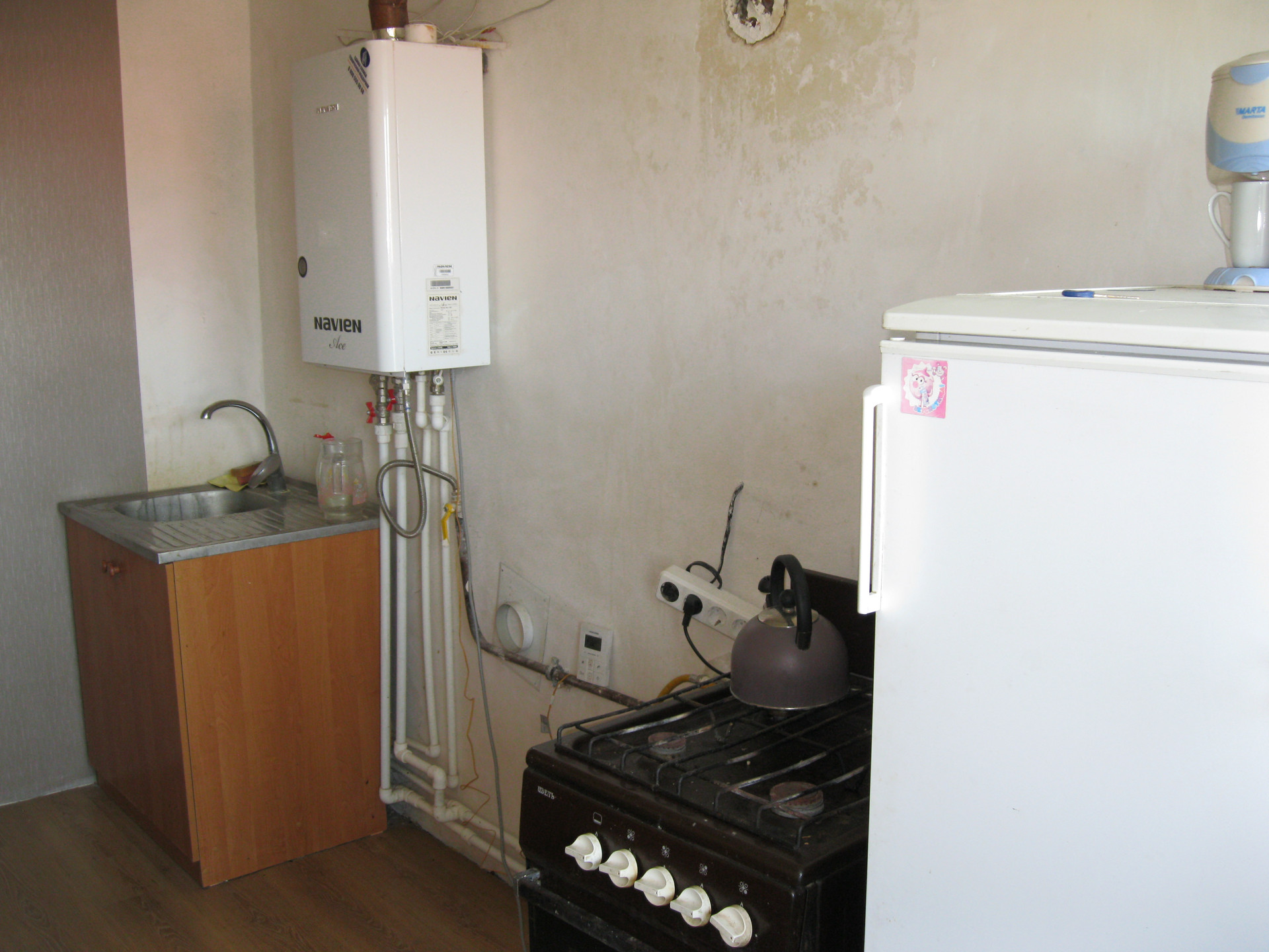 В квартире сделан хороший ремонт, меняли всю электрику, все трубы на холодную, горячую воду и канализацию, меняли все трубы и радиаторы отопления. Установлен новый современный двухконтурный котёл отопления, меняли газовый счётчик. На полах делали стяжку и постелен ламинат, натяжные потолки, хорошие обои на стенах, с/у в керамической плитке и с новой сантехникой. Хорошая светлая, тёплая и уютная квартира, вам только останется заказать и установить кухню и заезжать жить. За домом есть свой земельный участок под посадку овощей.