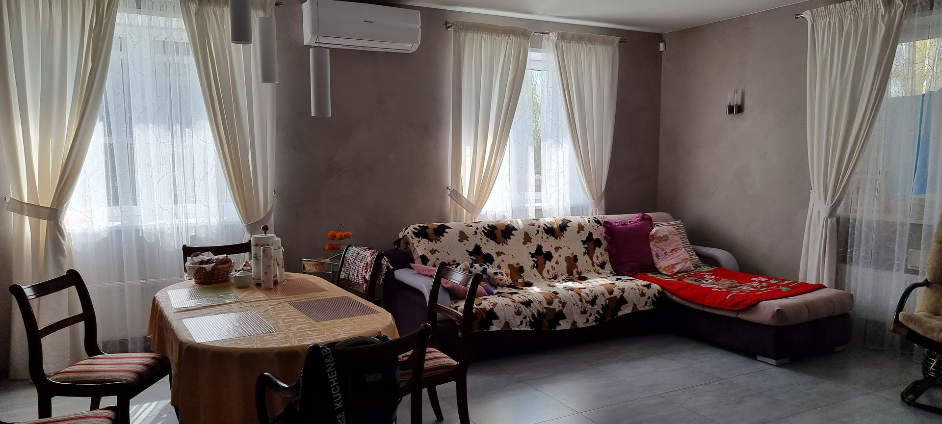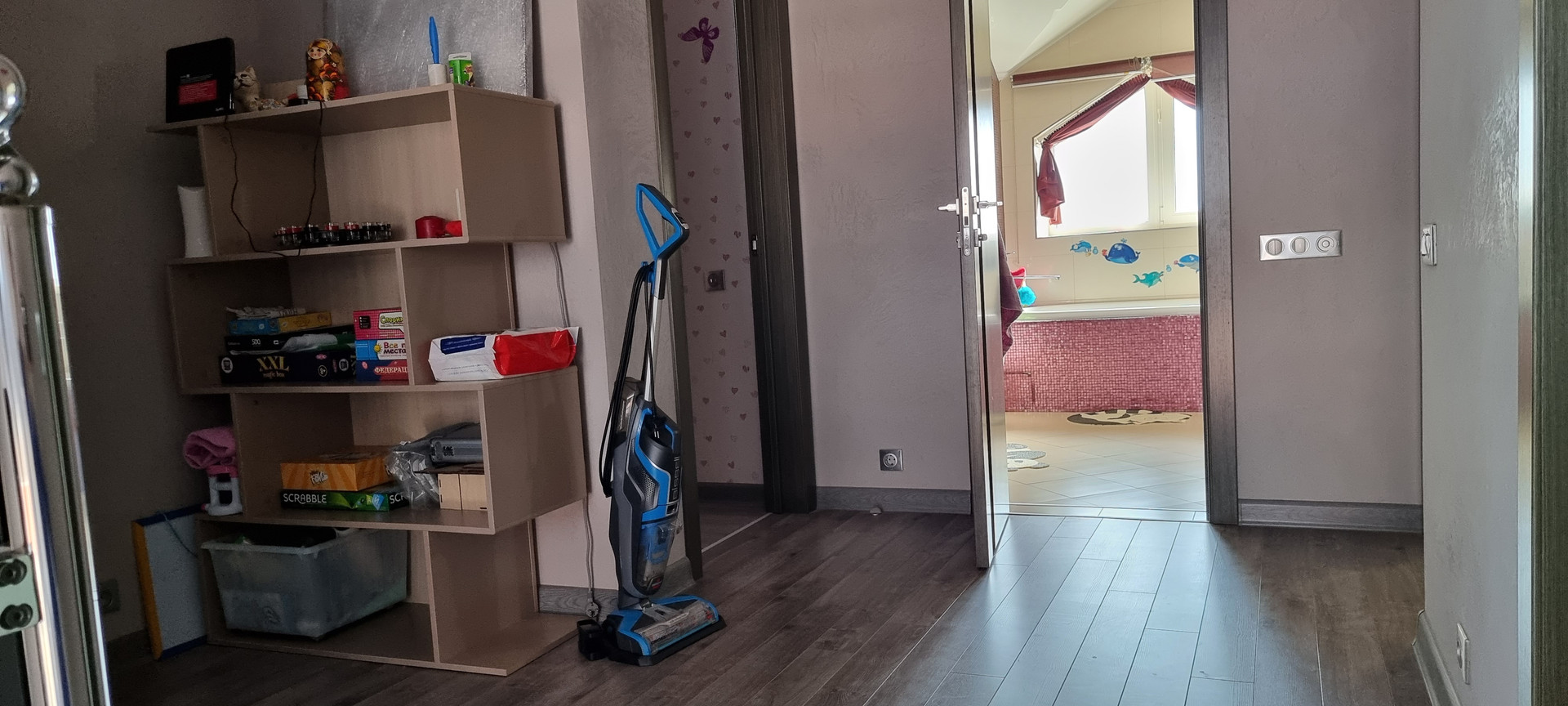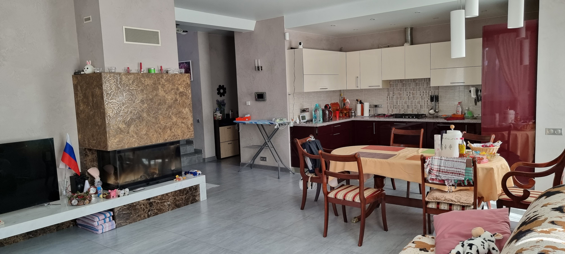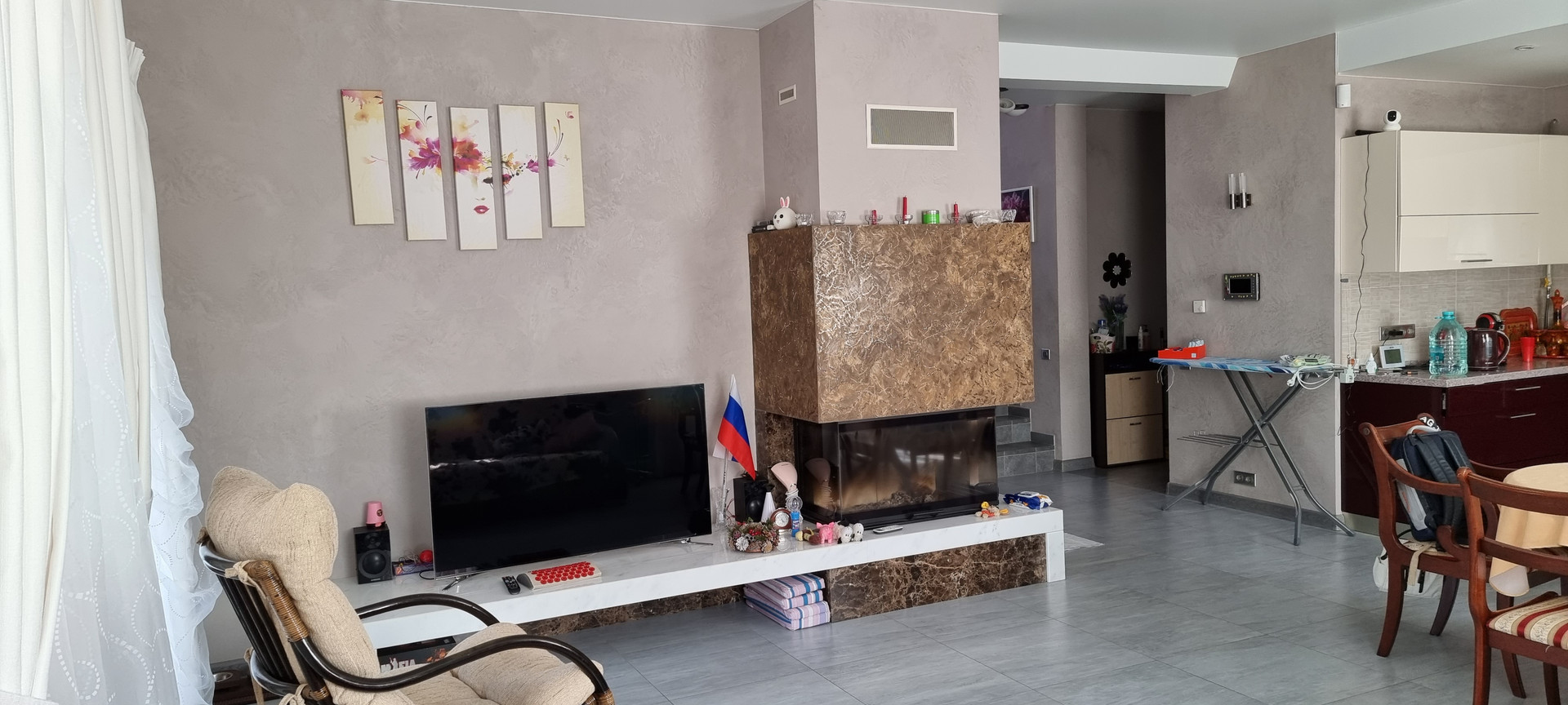 На всем первом этаже теплый пол, кроме спальной комнаты