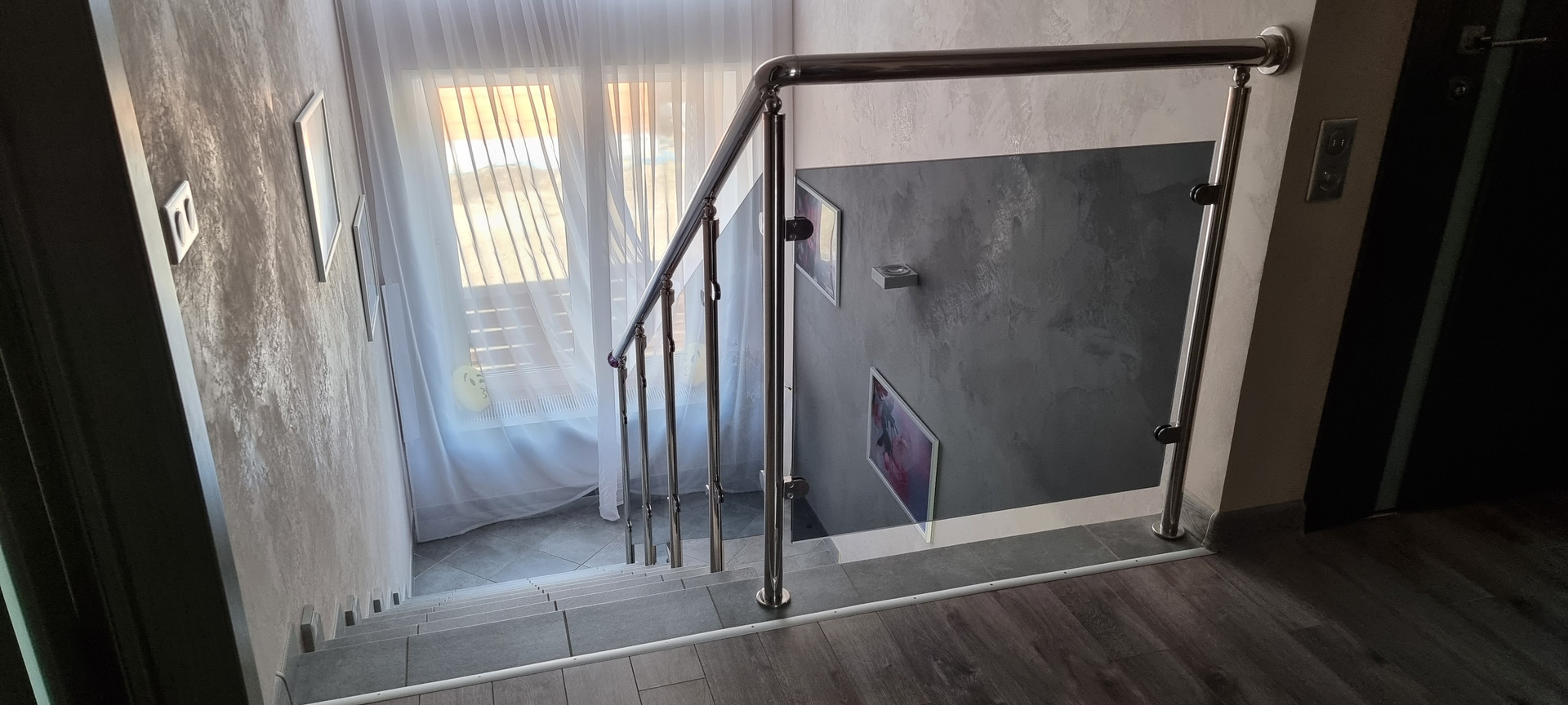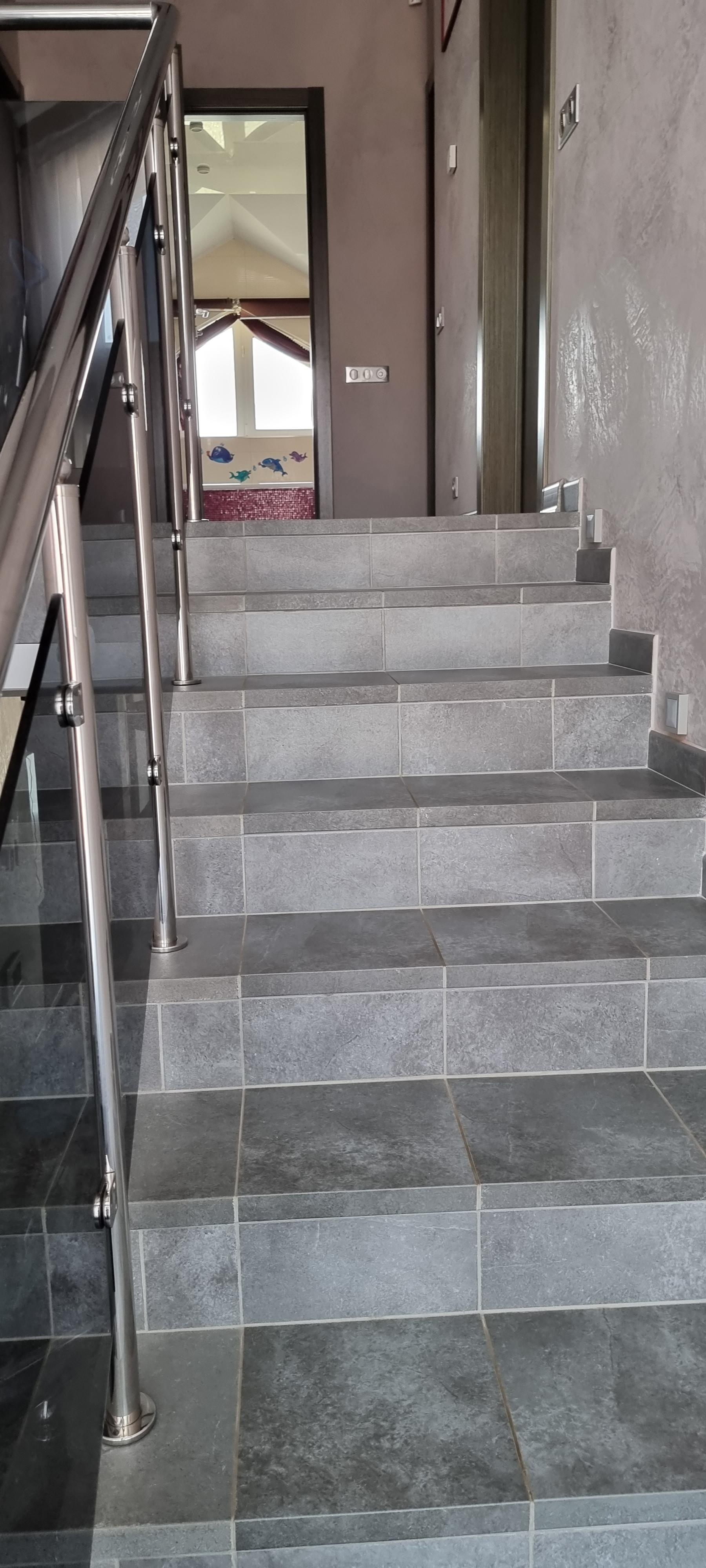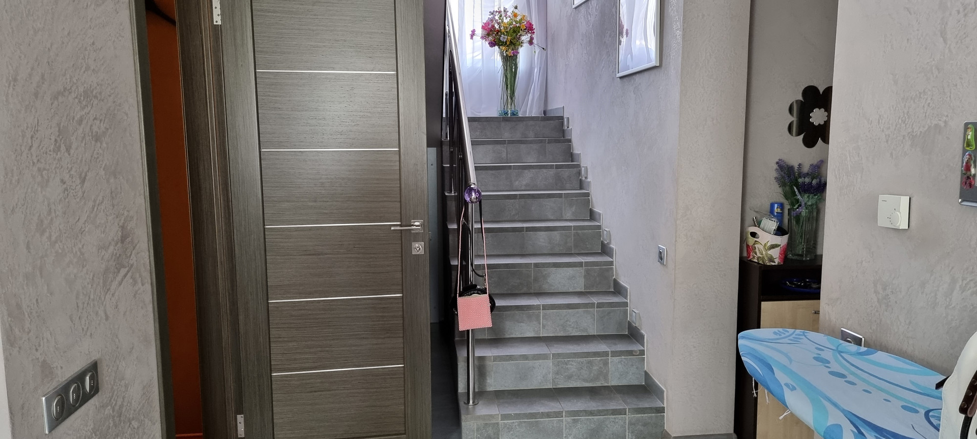 - Стены в холле, на лестничном пролете и в спальнях - декоративная штукатурка