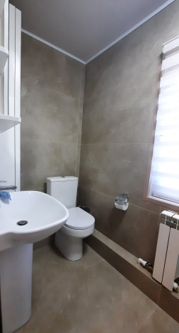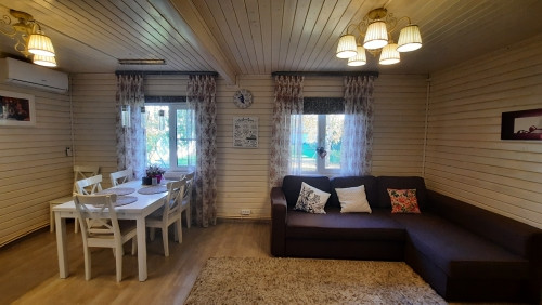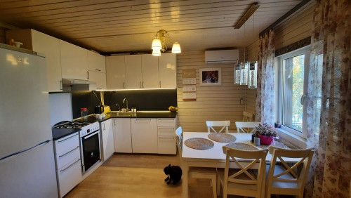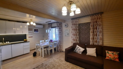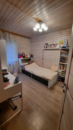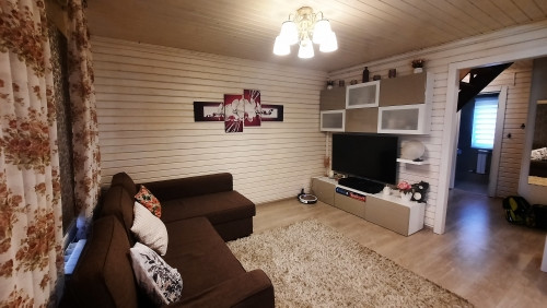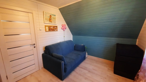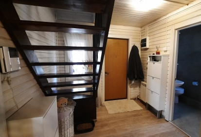 Планировка: 1этаж- прихожая, санузел совмещен с душевой кабиной (установлен теплый пол), кухня- гостиная ( есть кондиционер), комната. 2этаж- холл, две комнаты.