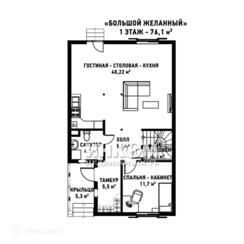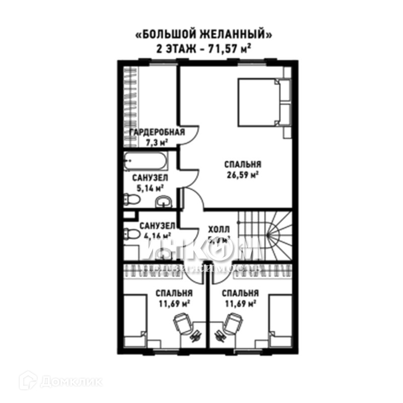 2-этажный дом, 153 м2, на продажу в селе Домодедово, коттеджный посёлок Медная Подкова, 169