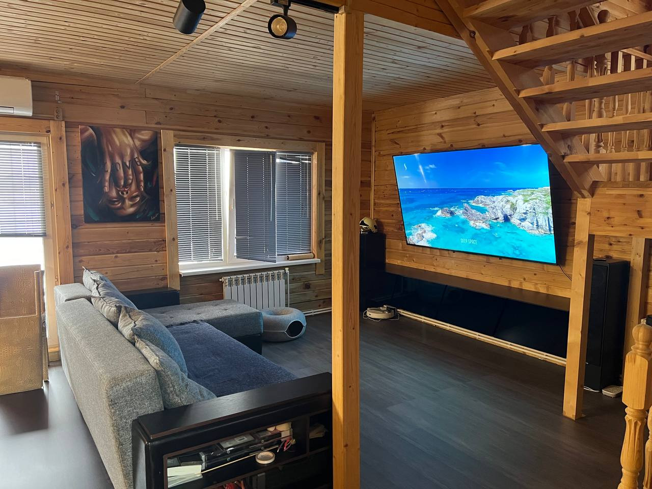 В доме устновлены 2 долговечных кондиционера. Имеются 3 телевизора (87, 75 и 67 дюйма) и проффесиаональная аудио система (Sound Bar).
