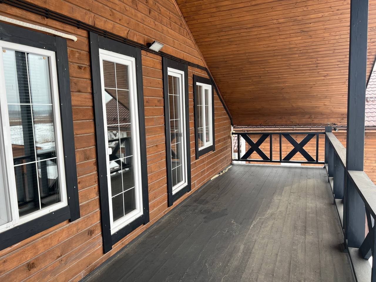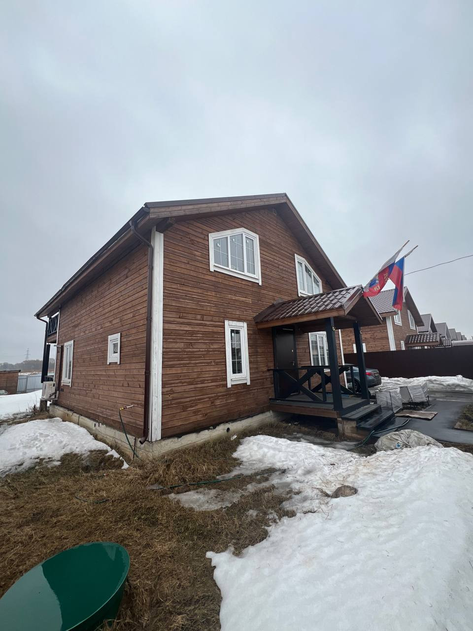 Беговая дорожка и спортивный инвентарь.  Кровать (200*200), Диван (280*200) и еще один Диван (200*200). На кухне: Духовой шкаф, Посудомойка и Кухонный гарнитур с сенсорной подсветкой. На крыше дома установлены прочные снегодержатели. На участке установлена Мангальная зона для Патио.