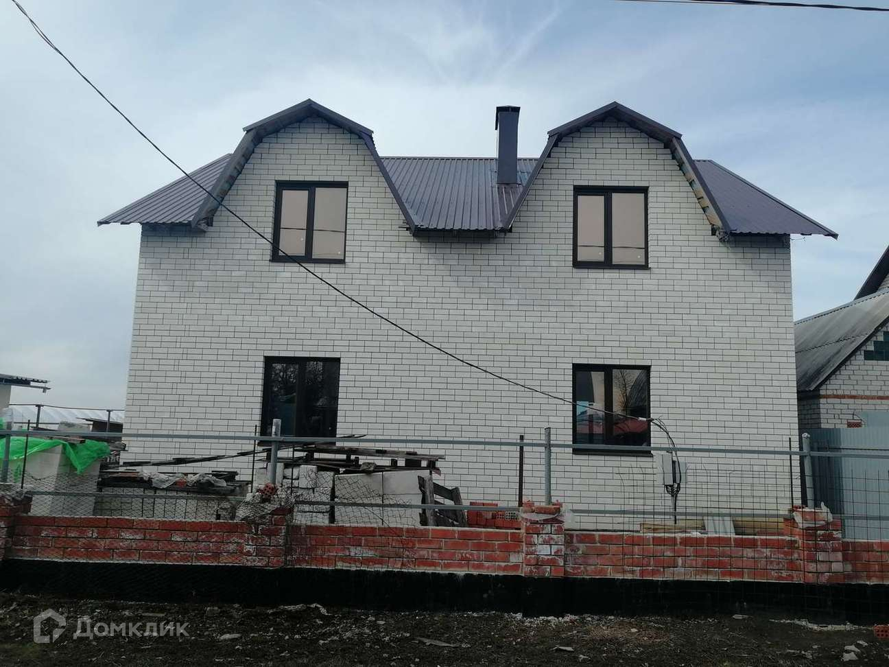 Дом построен для себя, стены выложены в 2 блочка и обложены белым облицовочный кирпичом. Перекрытия ж/б плиты, 2 этаж мансардного типа, под всем домом цокольный этаж высотой 1,80 м. Крыша Ме-профиль утеплена, окна ПВХ ламинированные. Дом требует внутренней отделки.