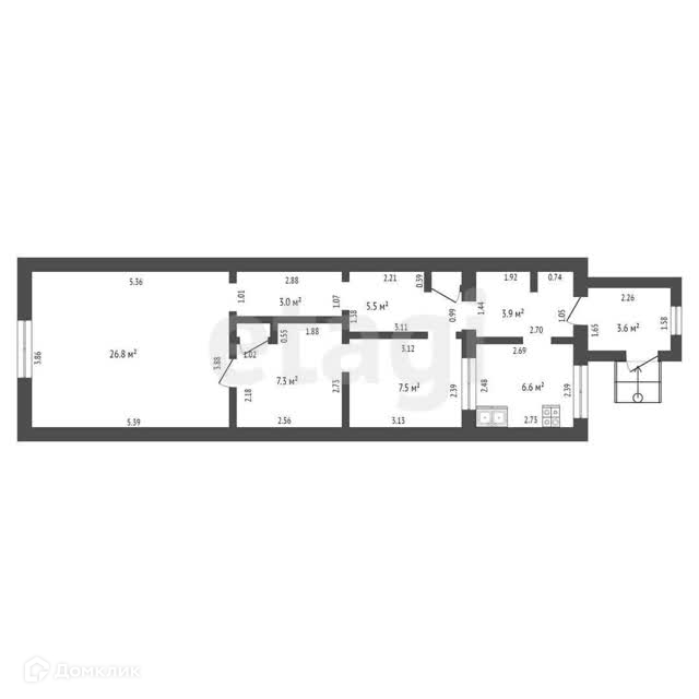 Площадь 53,9 кв.м. Комнаты 21 кв.м. и 8 кв.м, большой совмещенный санузел 7,5кв.м. Для горячей воды установлен водонагреватель. Кухня 7,5 кв.м.