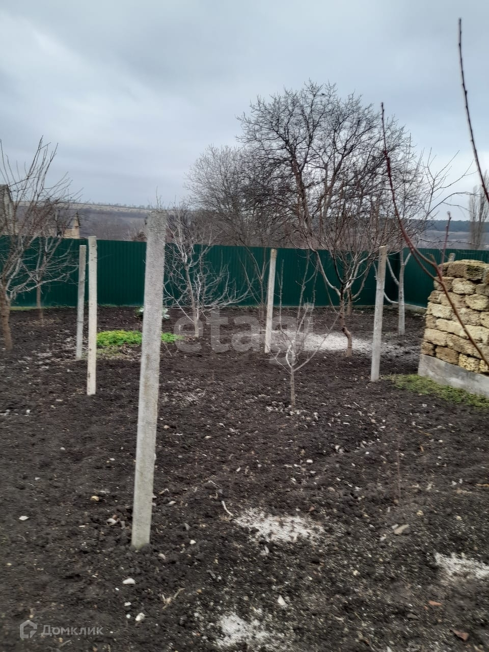 Участок по периметру огорожен профнастилом.