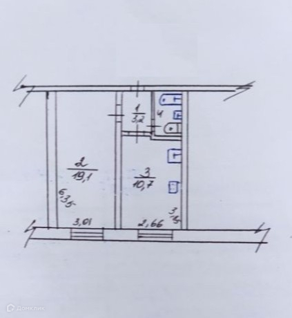 Жилая площадь 19.1 м2
