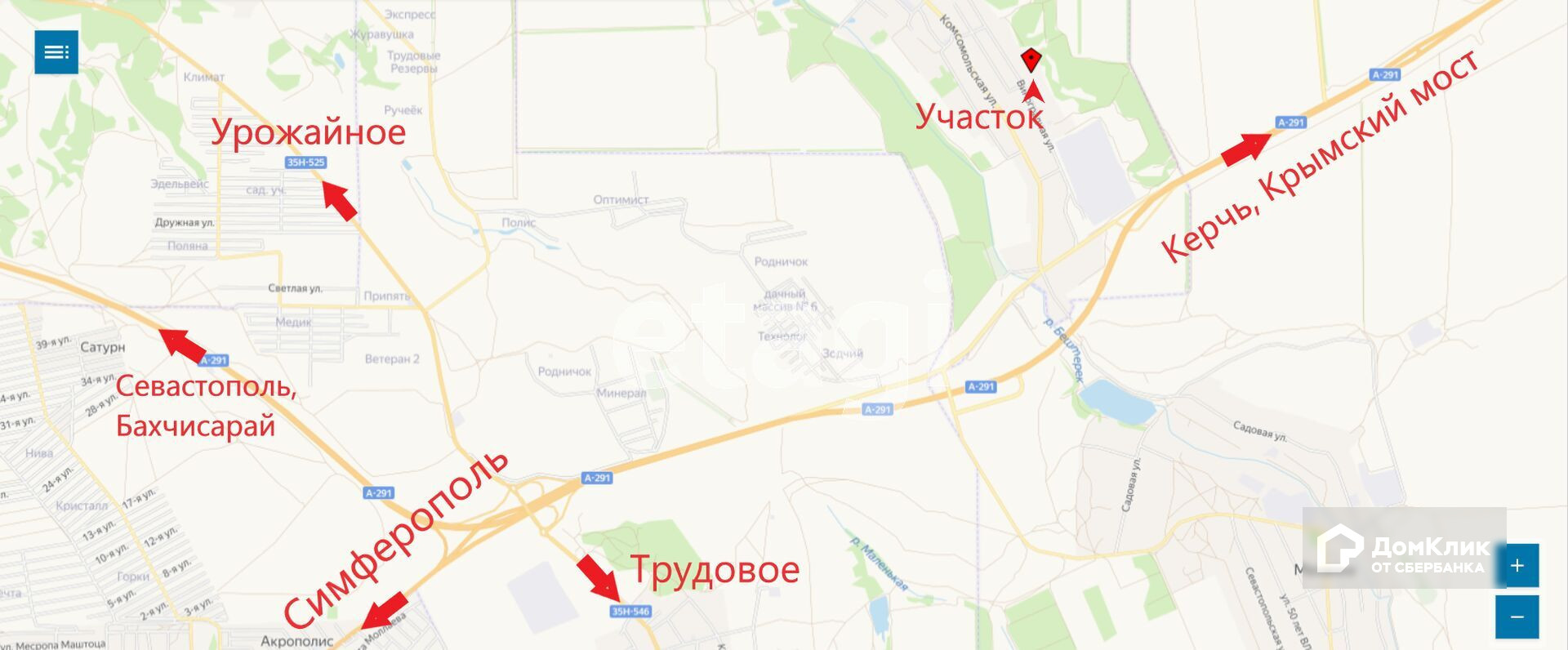 Участок ровный, расположен возле соснового леса. До остановки от участка - 200 м. 1 км от трассы Таврида откуда вы можете добраться в любую точку Крыма. Каждые 15-20 минут ходит автобус в город. Хорошая транспортная развязка во все стороны Крыма. До г. Симферополь 5 км.