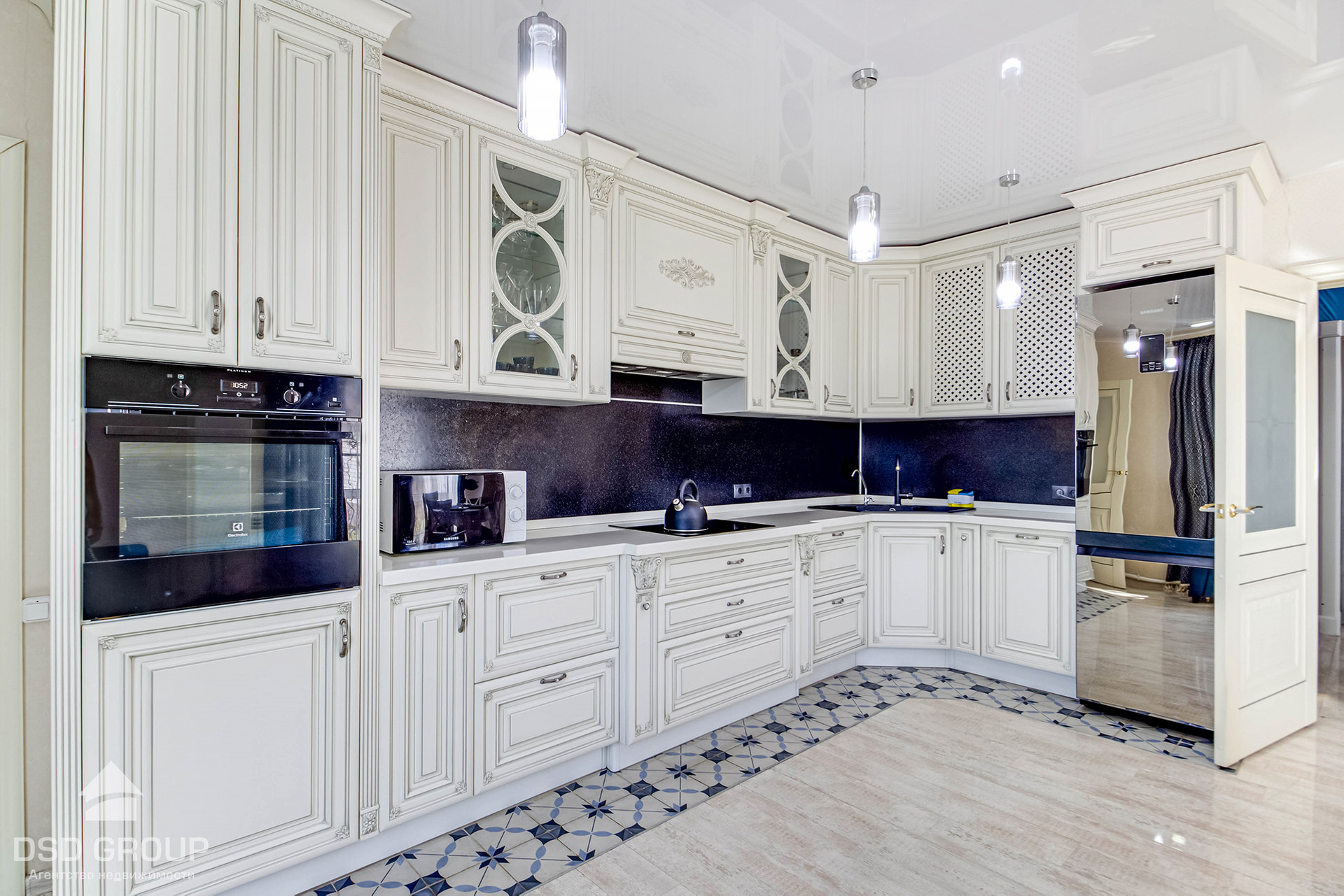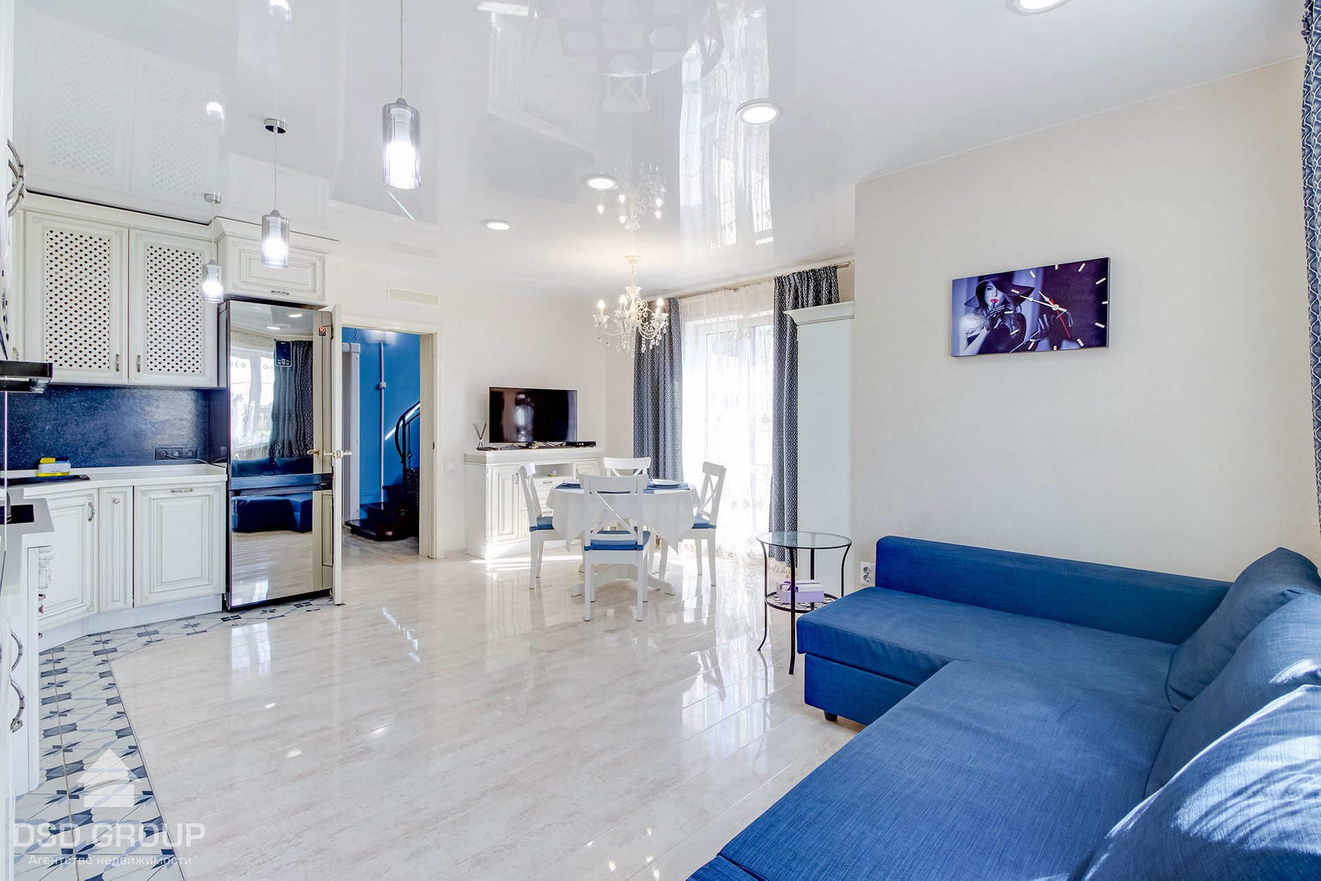 Дизайнерский ремонт выполнен с использованием качественных материалов.