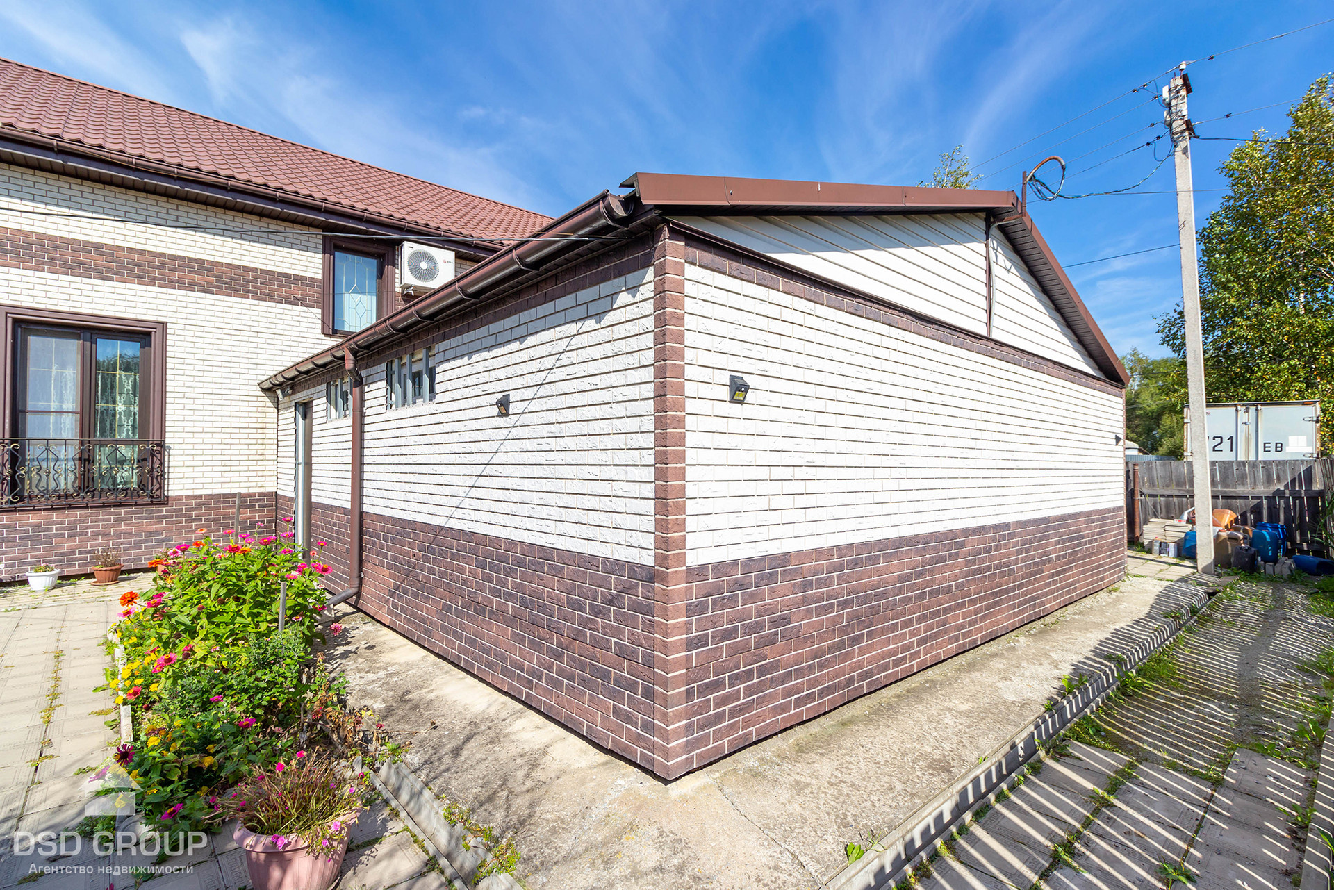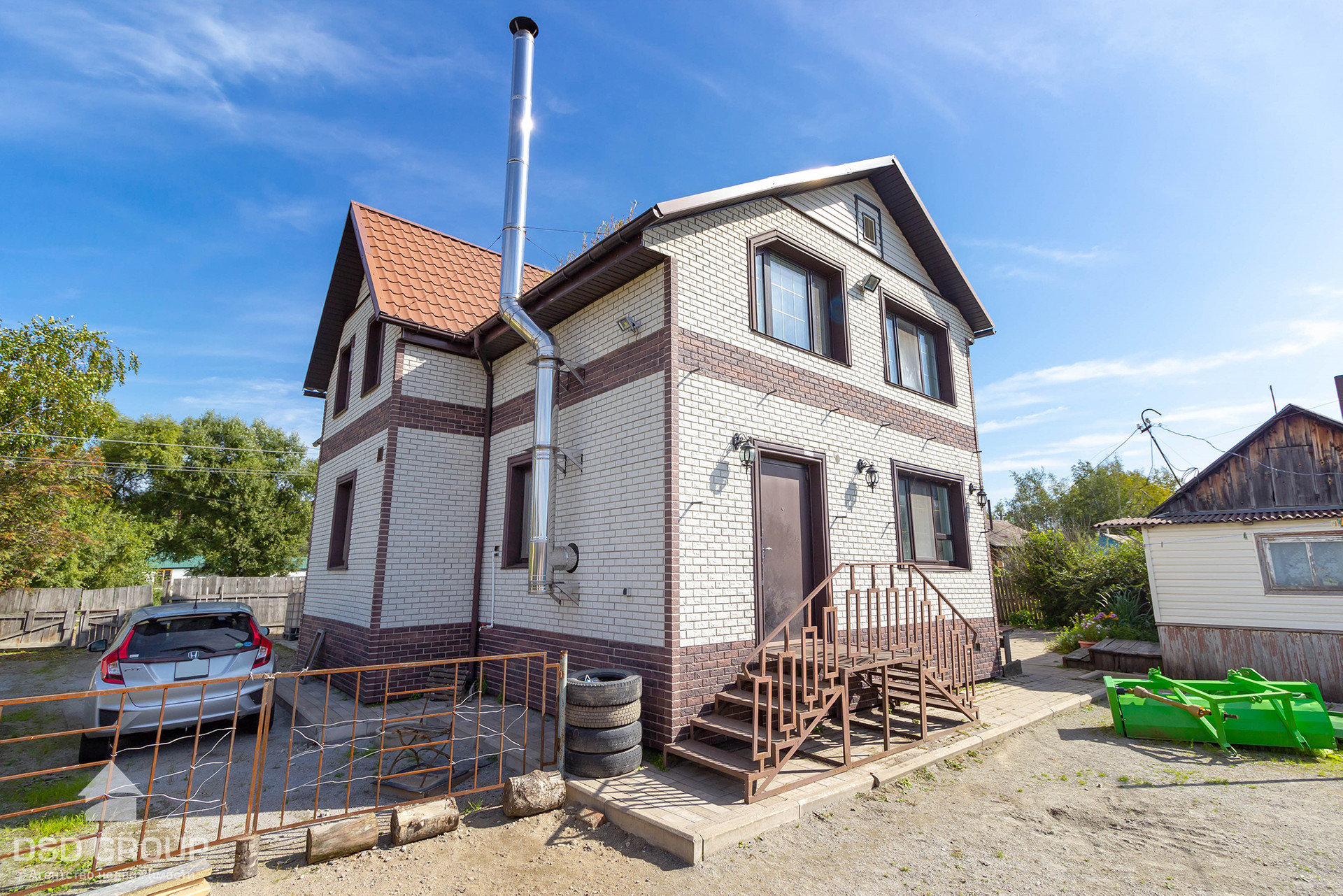 Дом утеплён, обшит стеновыми панелями под кирпич.