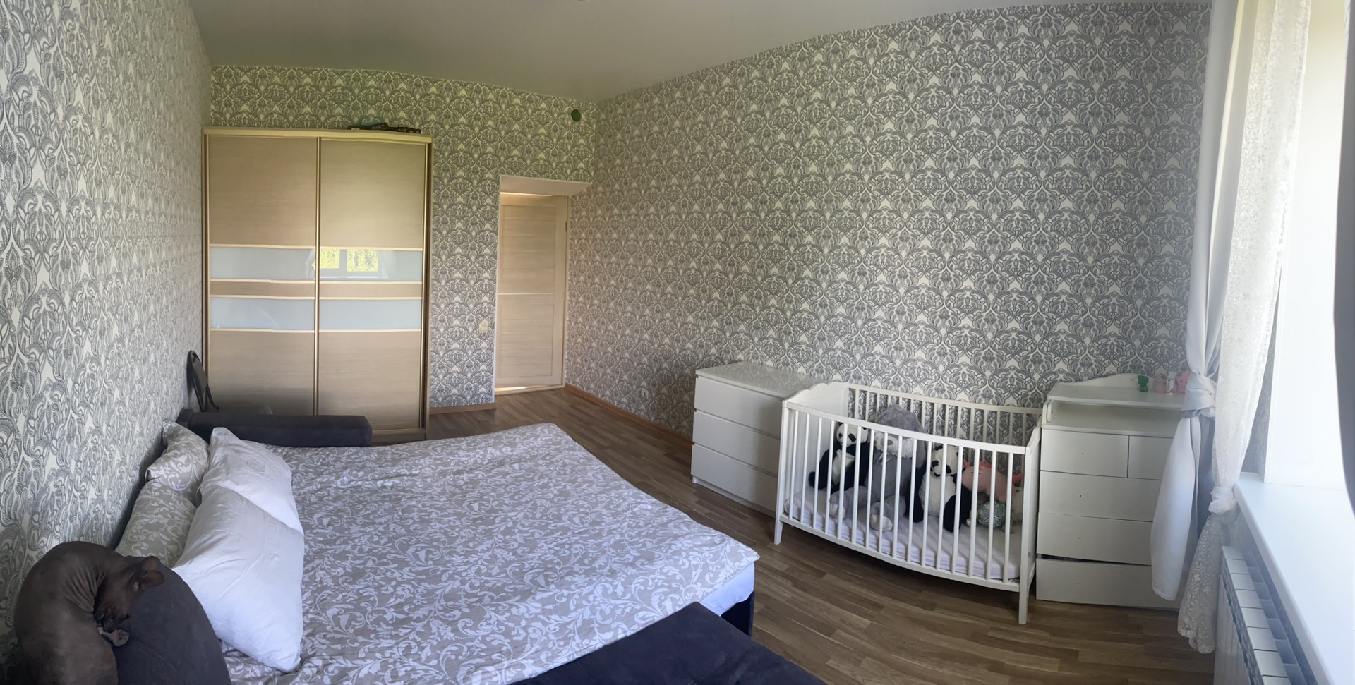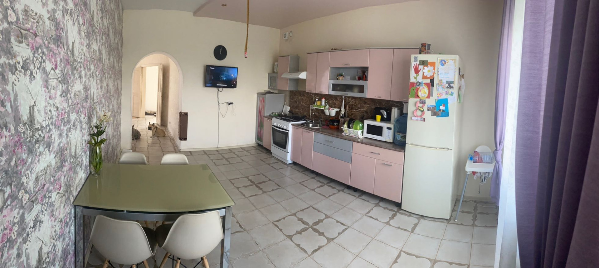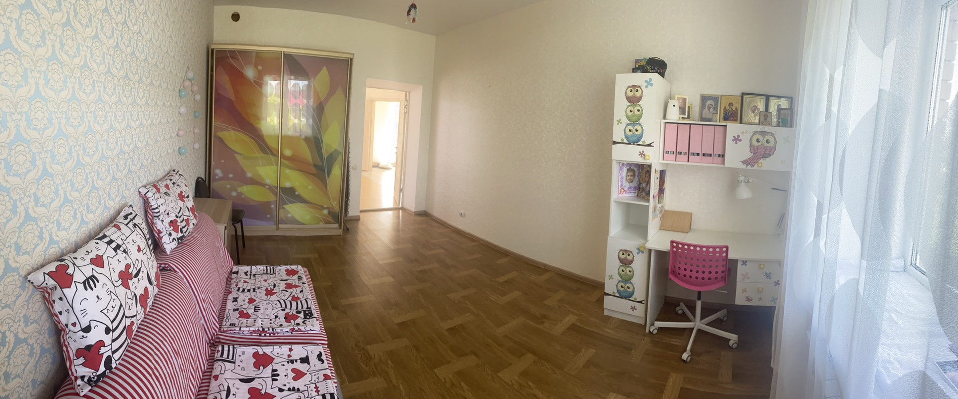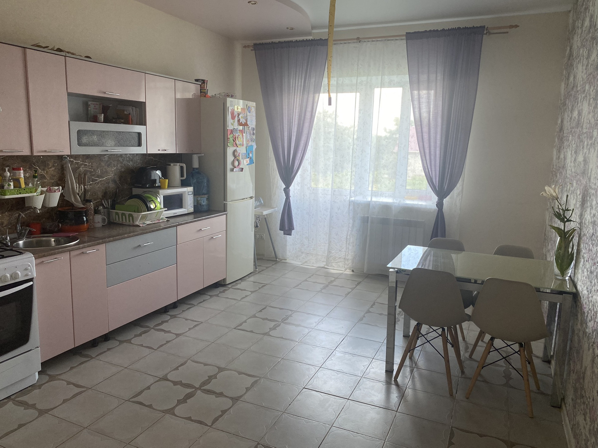 В гостиной большое панорамное окно/второй свет/,что дает дополнительный источник света и уют.Две комнаты-17,4 кв.м /17,6 кв.м и большая кухня 18,7 кв.м. ,санузел,