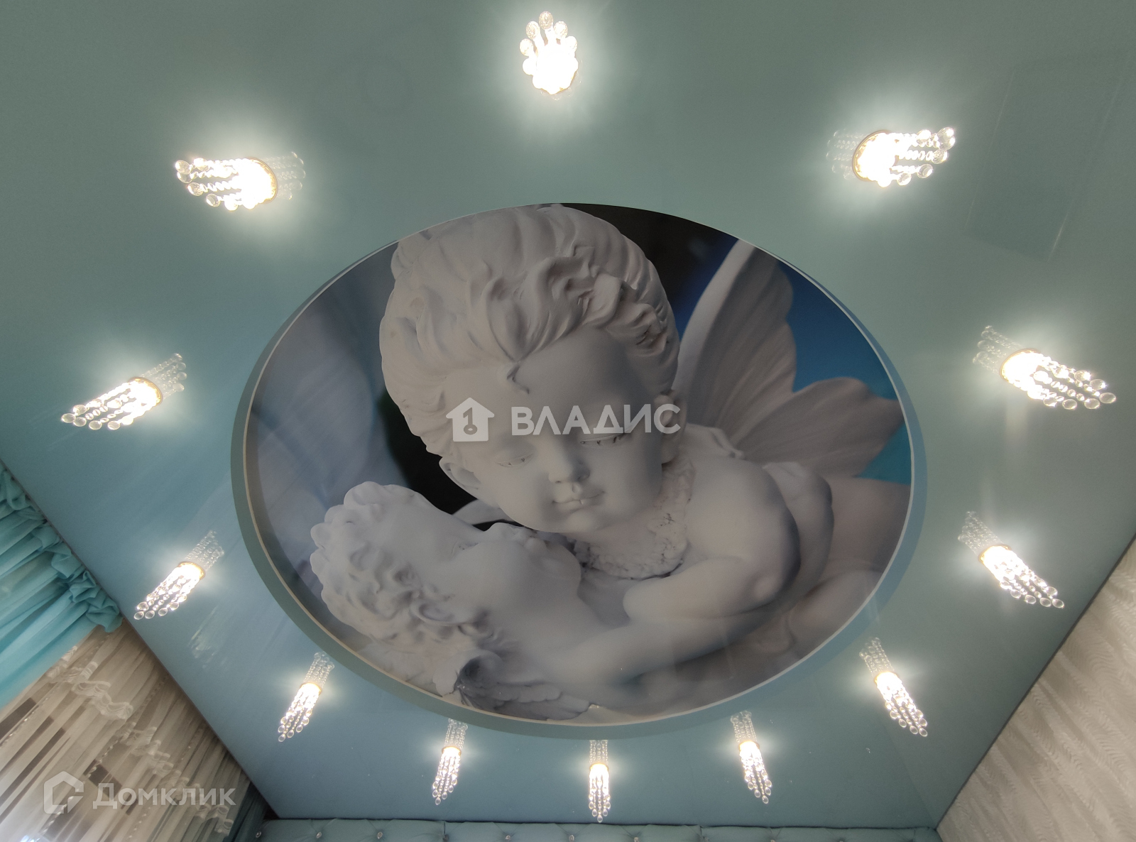 - глянцевые двухуровневые натяжные потолки,