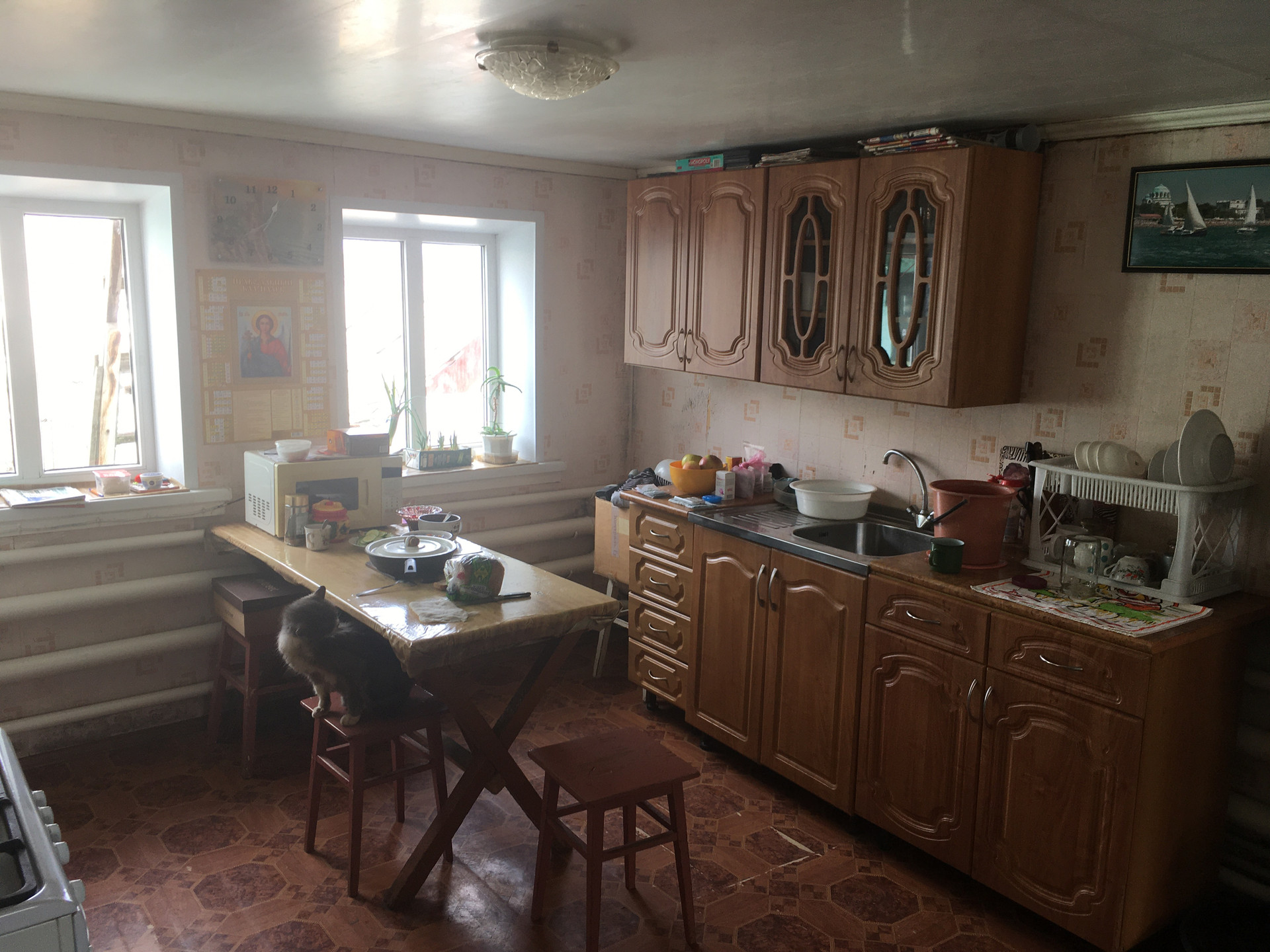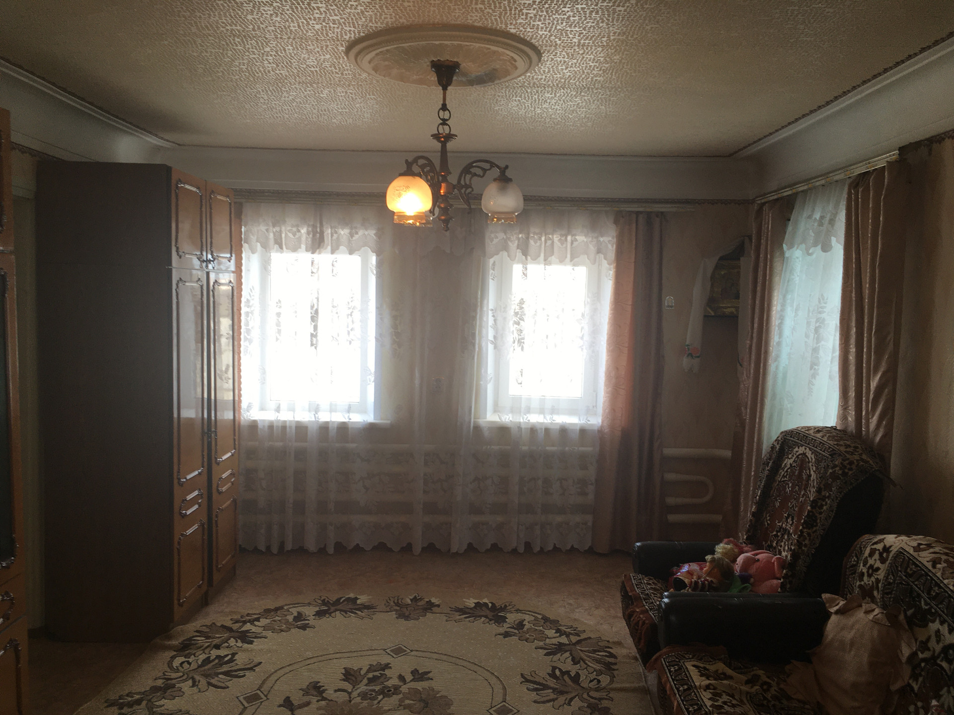 В доме сделан обычный косметический ремонт: стеклопакеты ПВХ, новые радиаторы, обои, натяжные потолки и т.д.