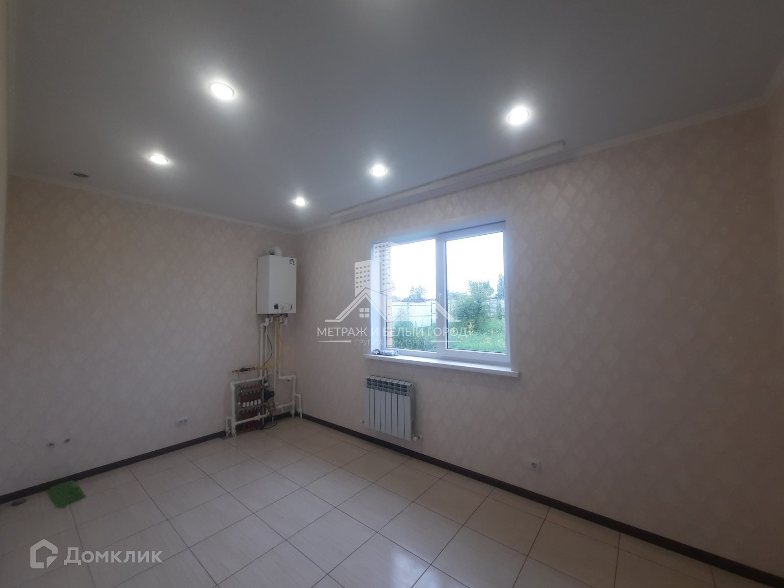 В цокольном этаже большая комната площадью 47.6 кв м отштукатурена, проведены все коммуникации.