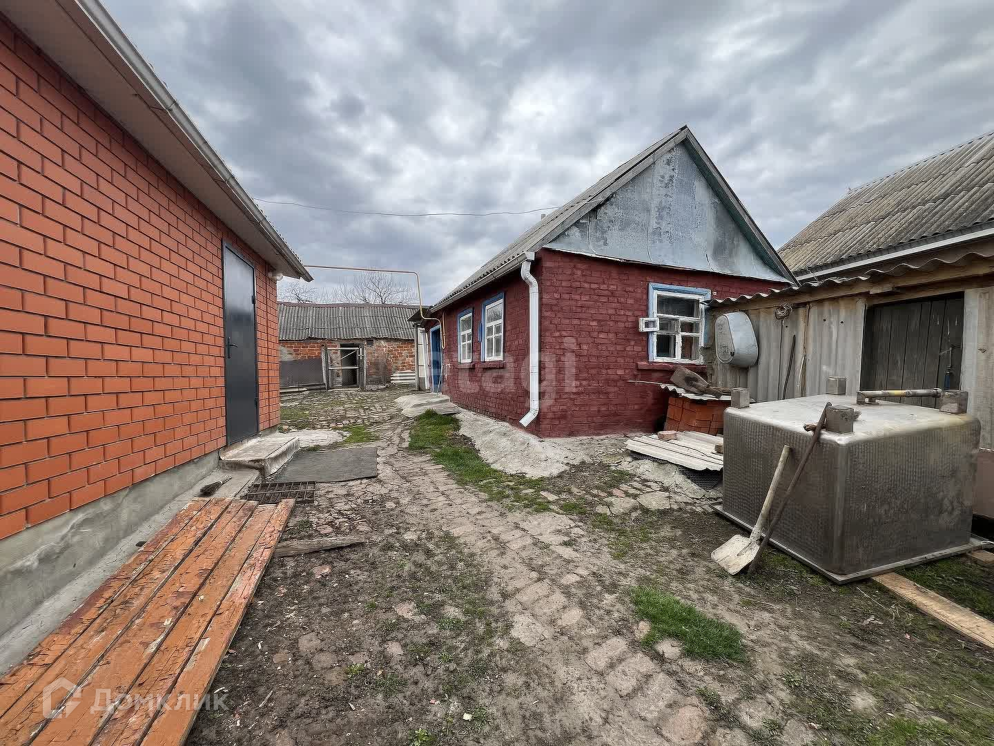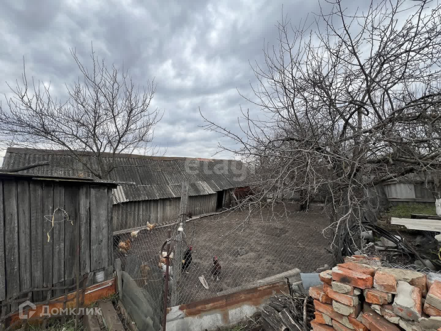 Большой огороженный двор, заезд во двор, во дворе есть навес под автомобиль, хоз постройки, в том числе несколько хоз построек для содержания домашней птицы, летняя кухня (газифицированная), погреб с входом с улицы, участок 30 соток под посадку (вспаханный, полностью готов к дачному сезону). Центральный водопровод с водой для полива. На участке посажены фруктовые деревья и кустарники. Круглогодичное освещение.