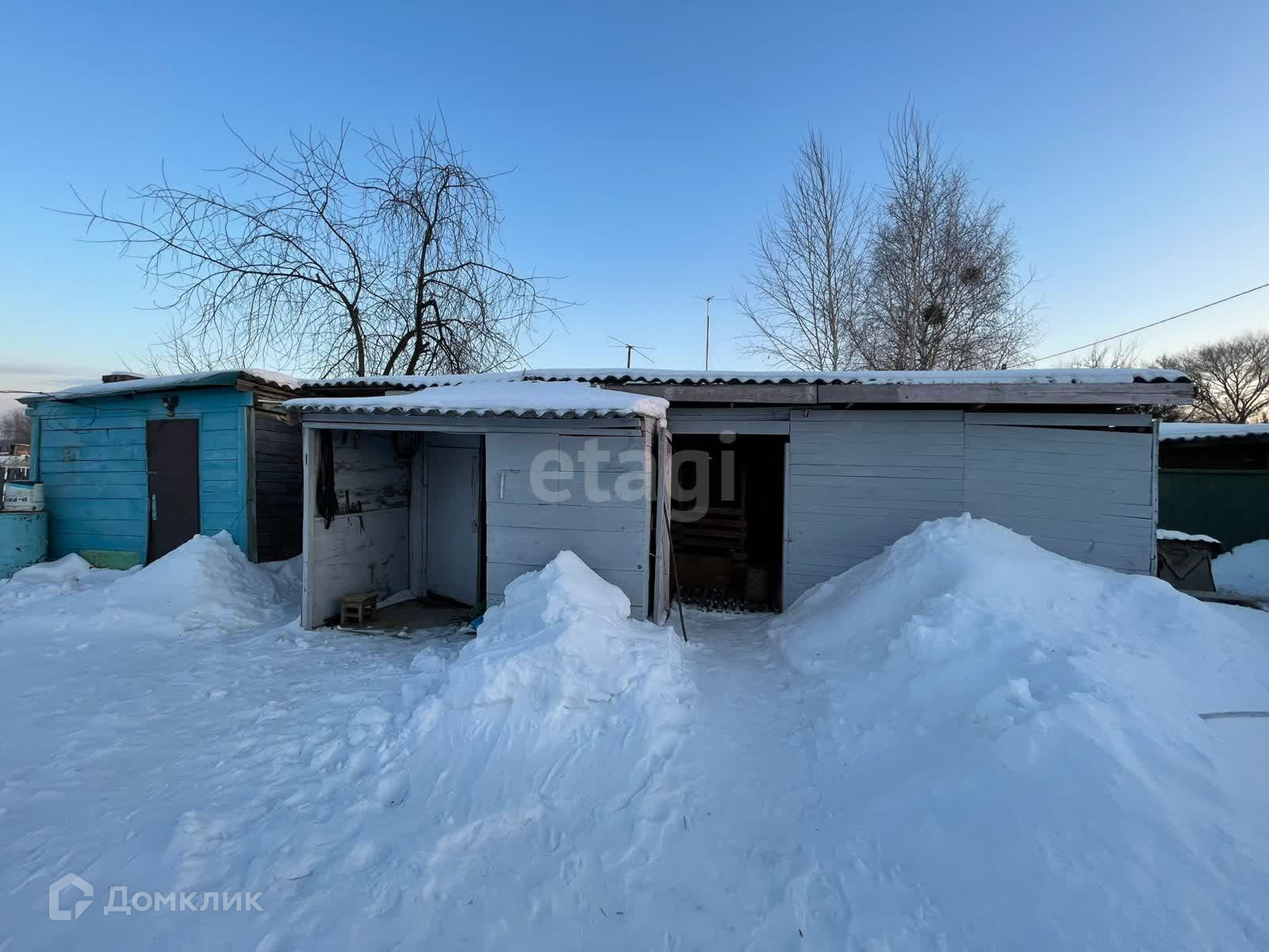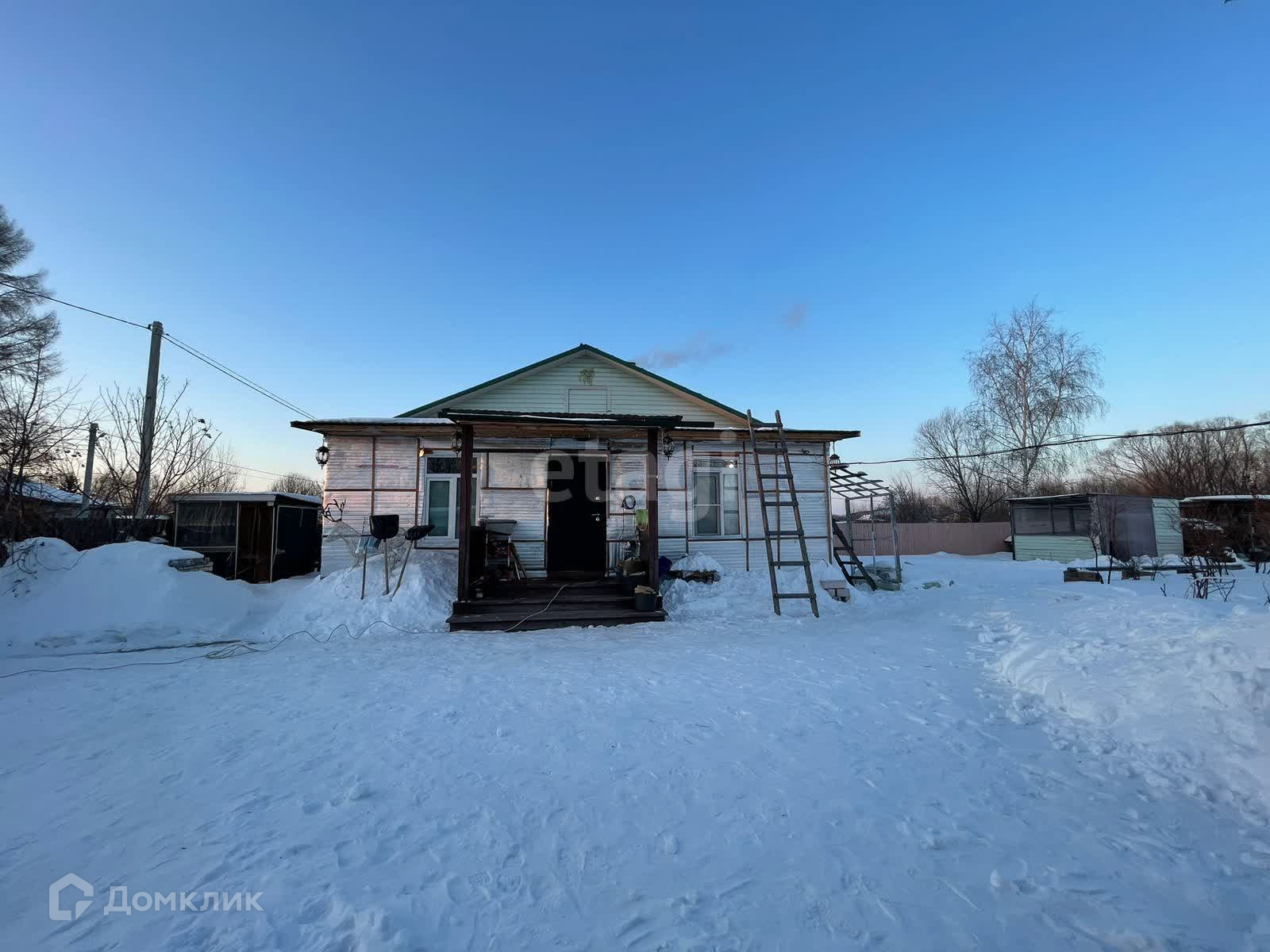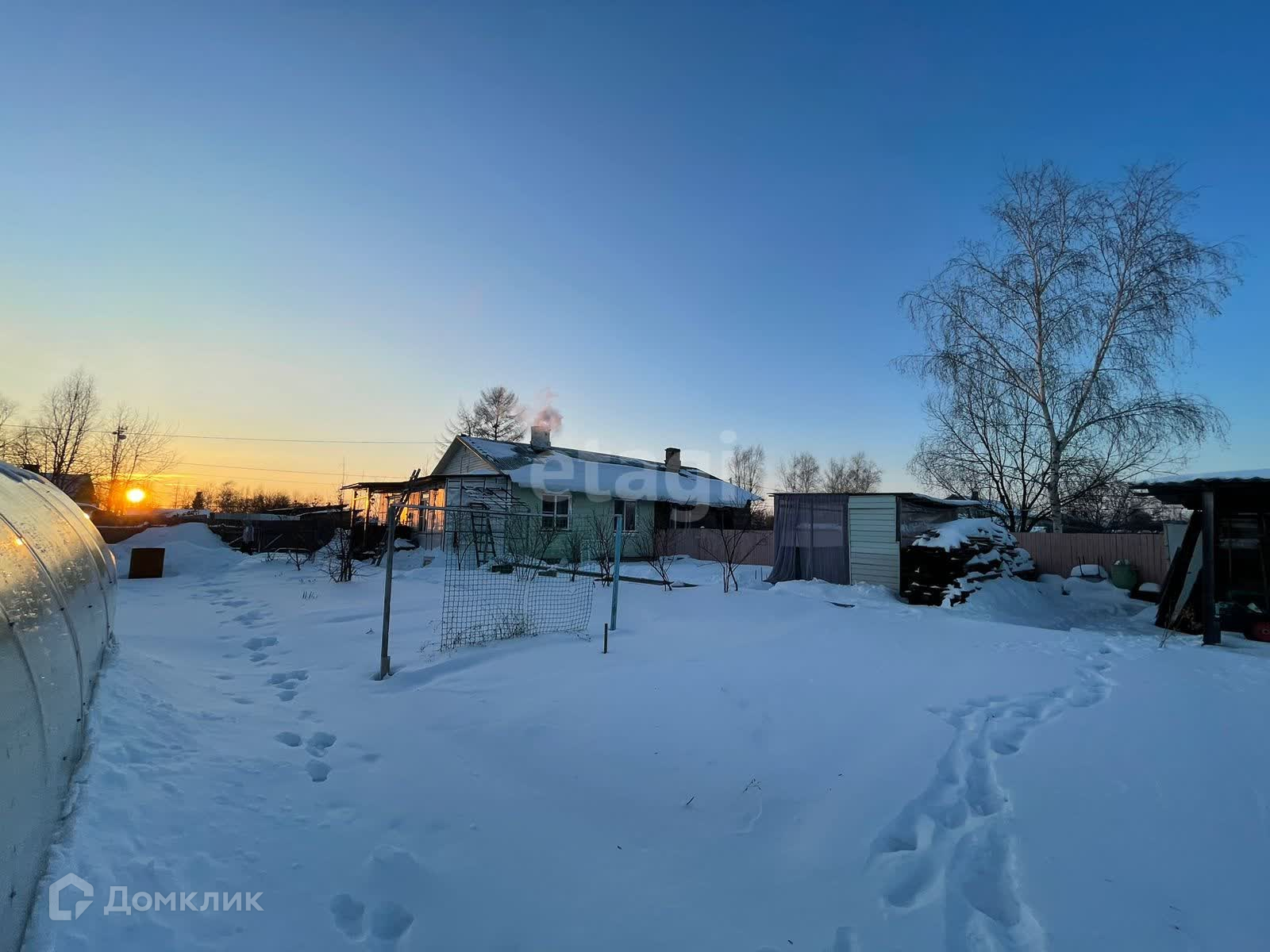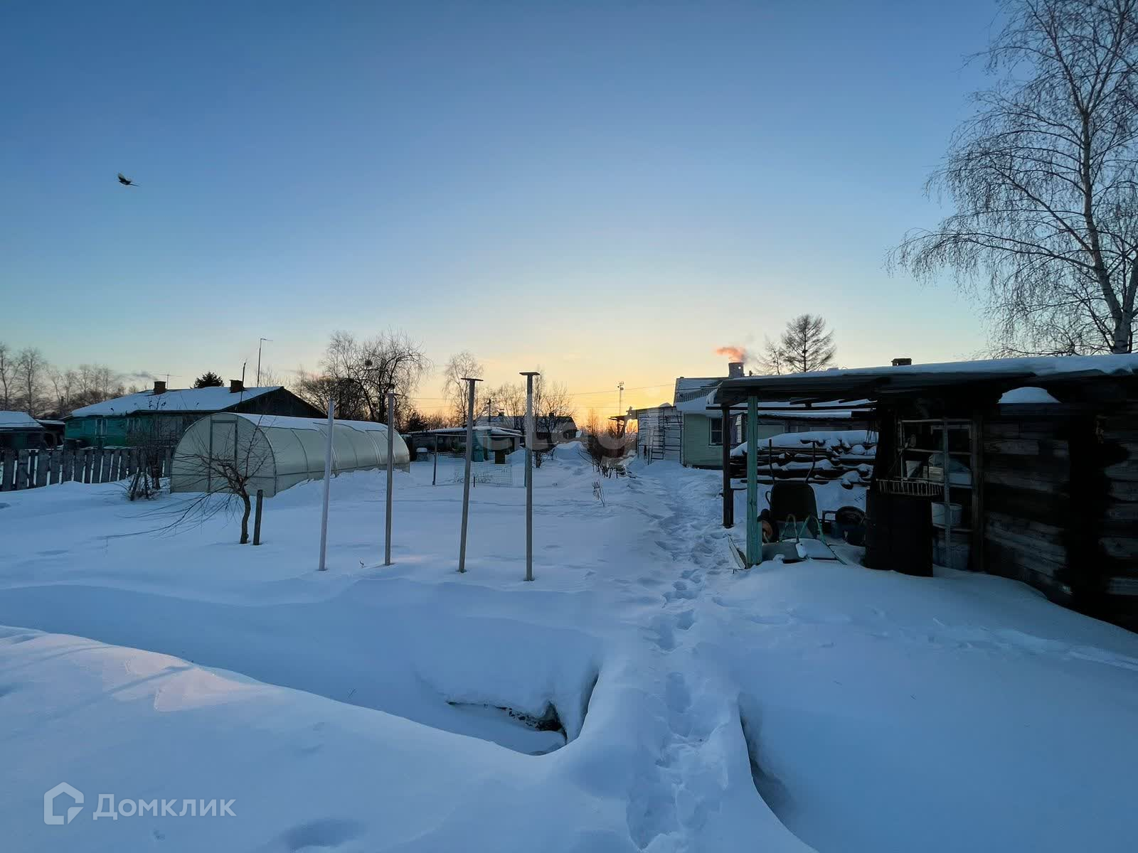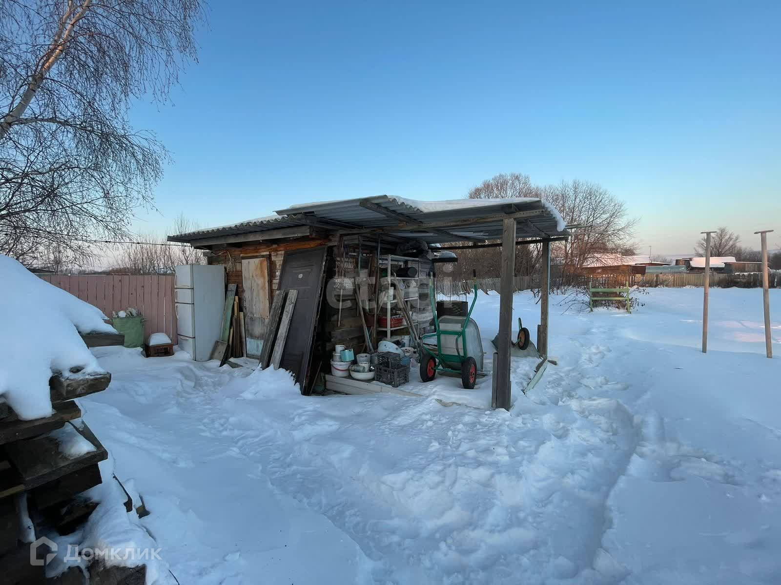 На территории находятся хозяйственные постройки: банька, дровяник, сарай, кладовые. Двор отсыпан, ухожен, не топит.
