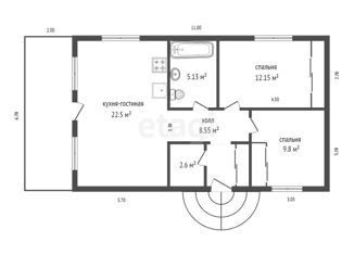 Проект загородного дома из газобетона 60 м2 (Это проект дома, не реальный объект) Компактный загородный дом. Идеальный вариант для молодой семьи. Общая площадь дома 60 м2. В доме находится просторный холл (8.55 м2), кладовая/гардеробная (2.6 м2), а также 2 отдельных спальни площадью 12.15 и 9.8 м2, и большой совмещённый санузел (5.13 м2). Помимо этог... |