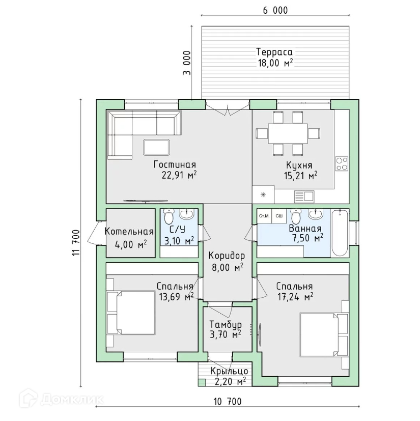 Общая площадь 95 м2