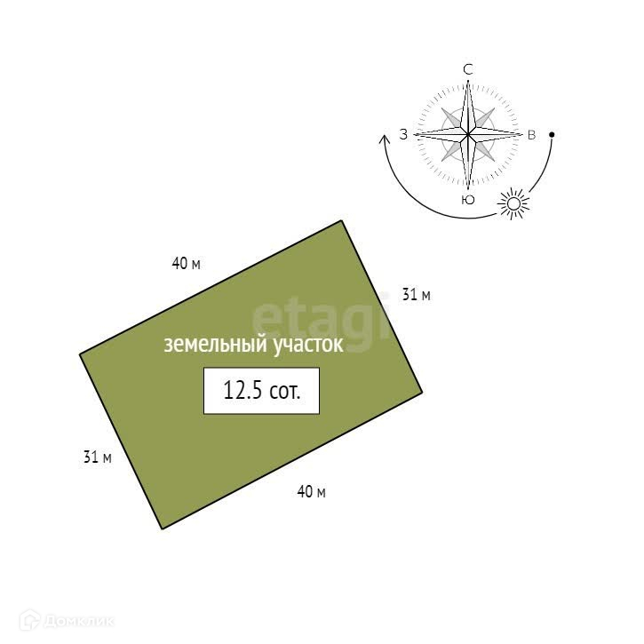 Площадь участка 12.5 сот.