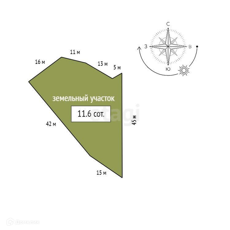 Площадь участка 11.6 сот.