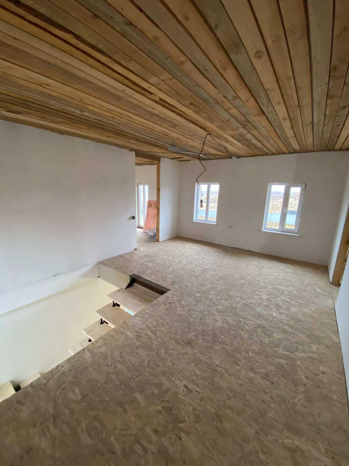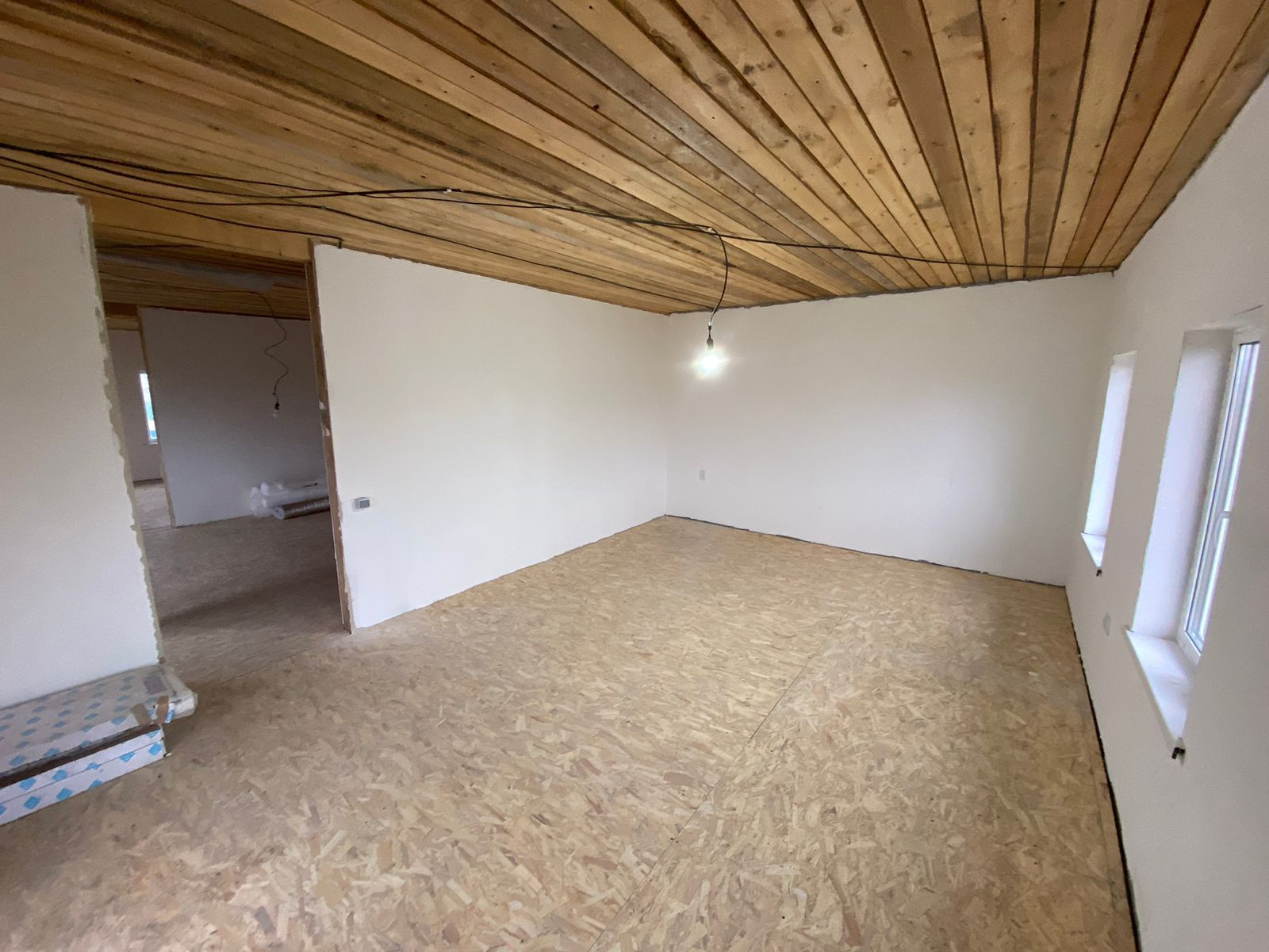 ВТОРОЙ этаж - стены также готовы под обои/покраску, полы и потолки готовы под ламинат и натяжные потолки, полная разводка электричества.