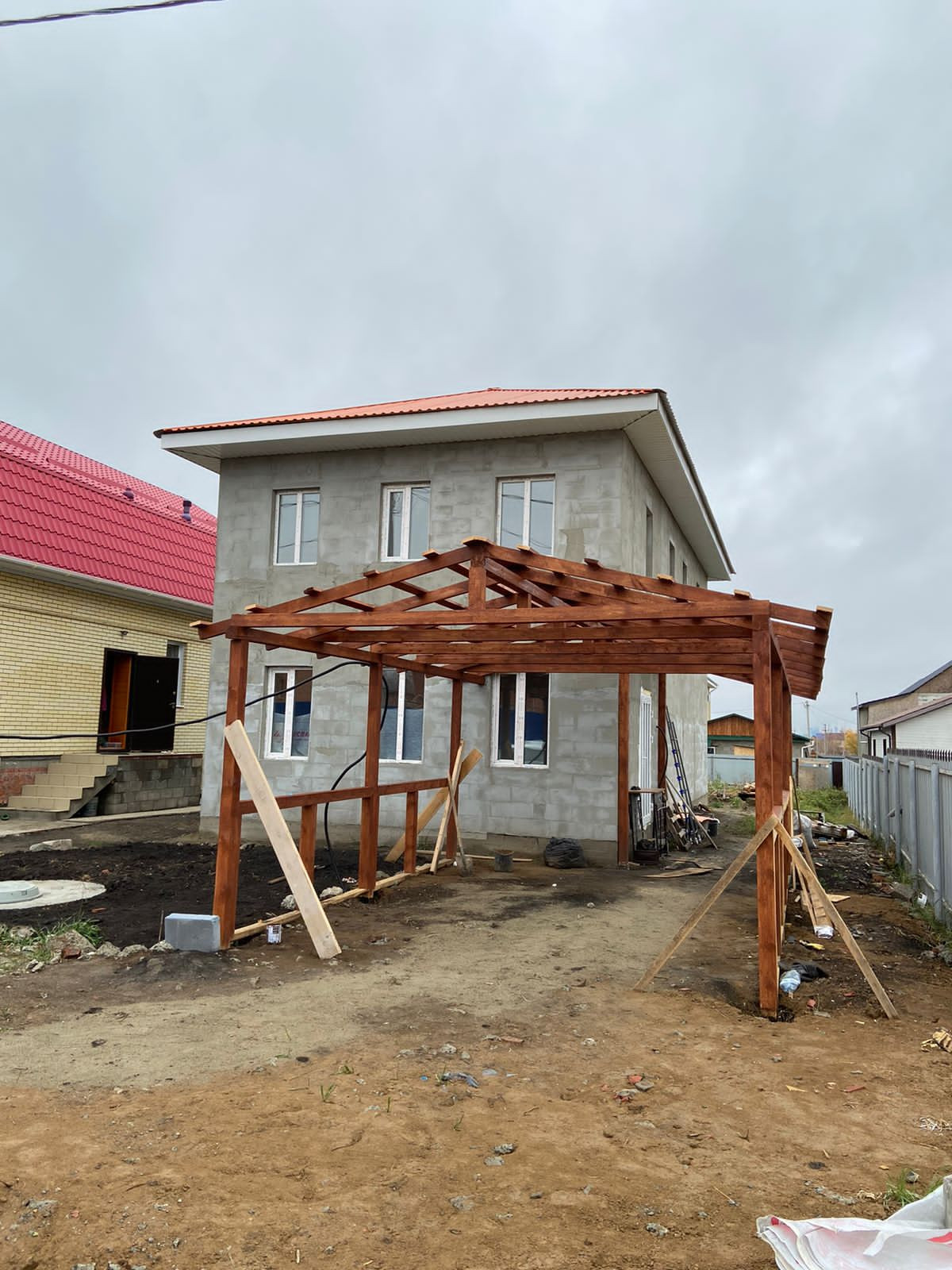 Стены: пенобетон, фундамент: сваи, бетонная плита.