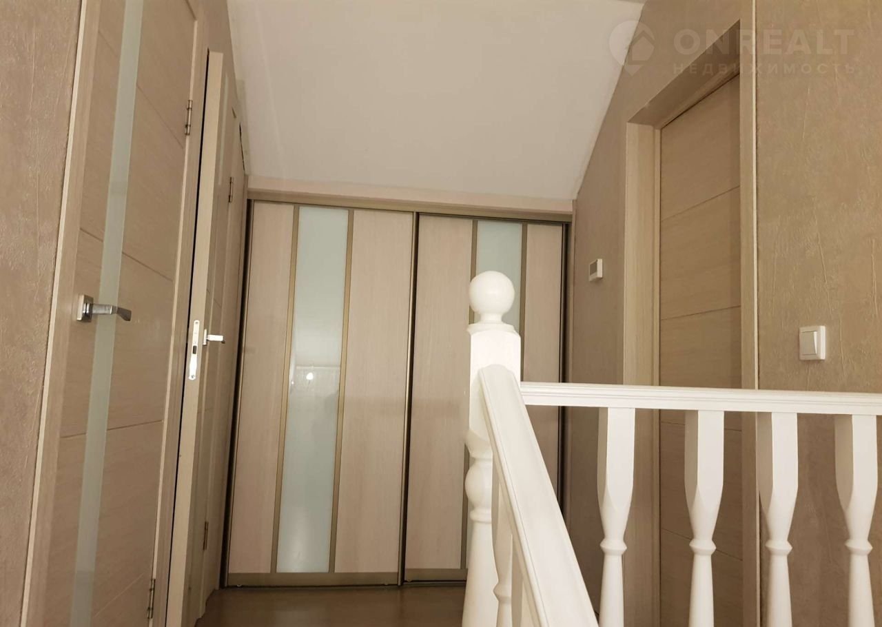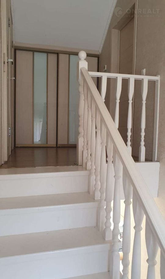 В прихожей и на лестнице встроенные вместительные шкафы-купе.