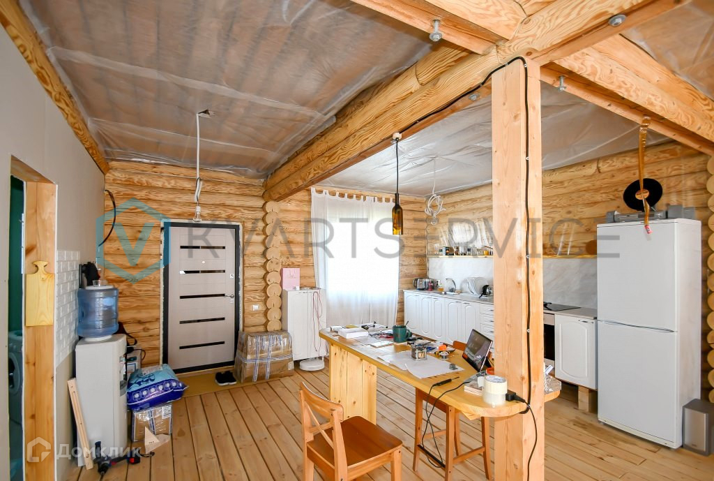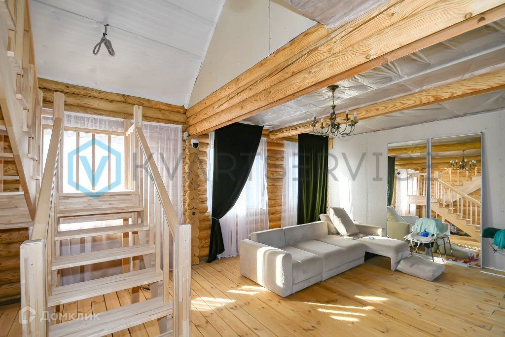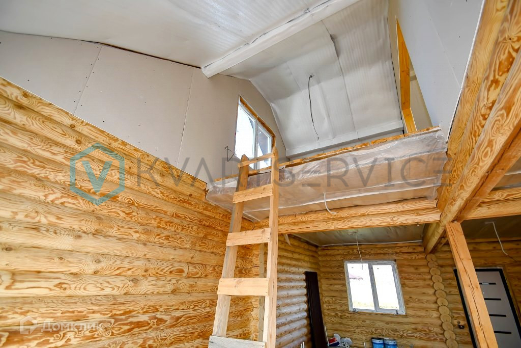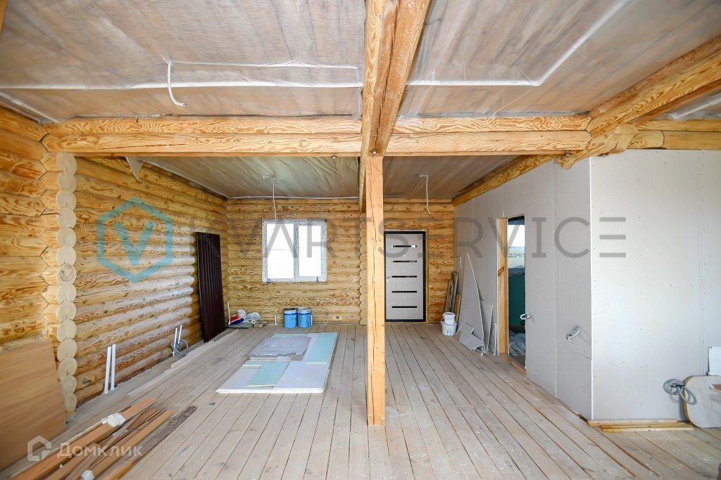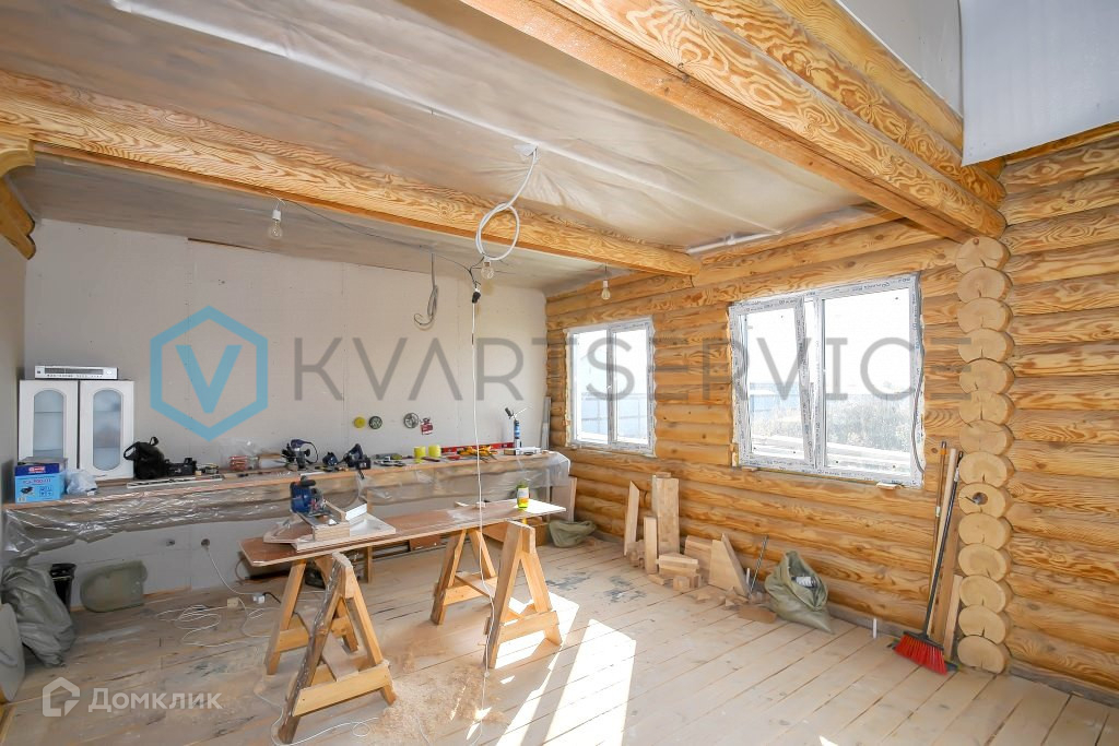 Дом на ленточном фундаменте, стены дома из оцилиндрованного бревна, окна ПВХ, крыша профнастил.