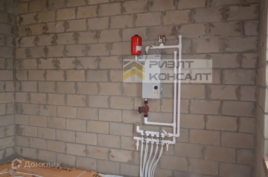 Дом находится в коттеджном поселке. Дом сделан по проекту. Материал постройки керамзитоблок, с утеплителем и облицовочным кирпичом. Дом на высоком фундаменте. Центральный водопровод, септик, газ. Первый этаж оборудован теплым полом. Трехкамерные окна ПВХ, черный ход с терассой и французским окном. Крыша сделана металлочерепицей. Внутри черновая отделка, со стяжкой пола. подготовлены выводы под канализацию.