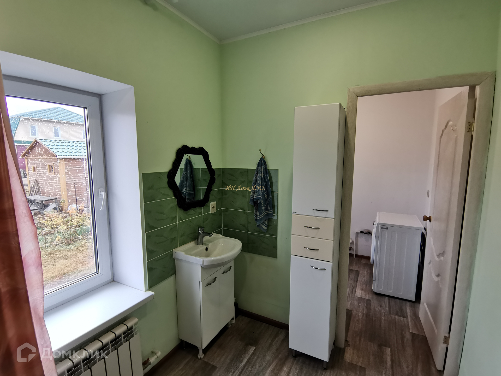В доме остаются шкафы-купе, кухонный гарнитур, мебель в ванной.