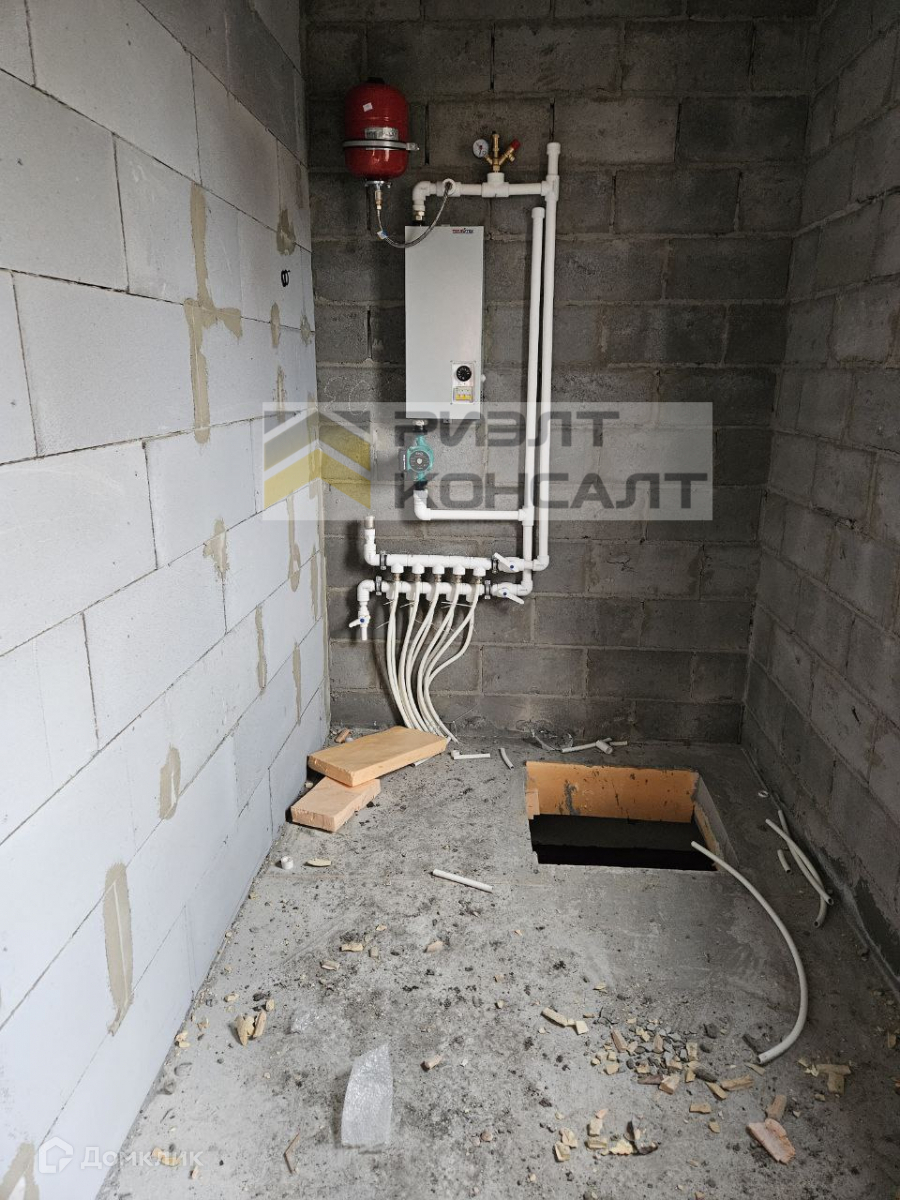 Дом находится в коттеджном поселке. Дом сделан по проекту. Материал постройки керамзитоблок, с утеплителем и облицовочным кирпичом. Дом на высоком фундаменте. Центральный водопровод, септик, газ. Первый этаж оборудован теплым полом. Трехкамерные окна ПВХ, черный ход с терассой и французским окном. Крыша сделана металлочерепицей. Внутри черновая отделка, со стяжкой пола. подготовлены выводы под канализацию.