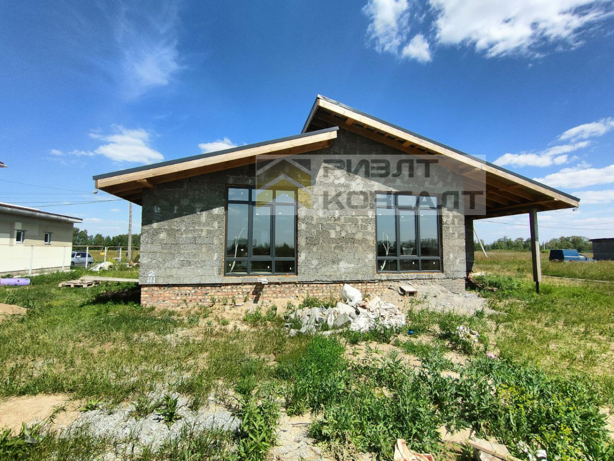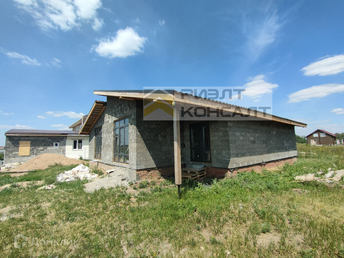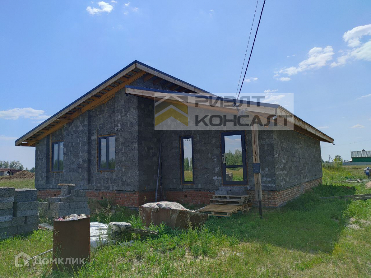 Дом на бетонном фундаменте, выполнен из арболита, оштукатурены снаружи и внутри. Кровля утеплена и накрыта металлочерепицей. В доме произведена разводка системы отопления (теплый водяной пол), сделана стяжка пола, разведена электропроводка, все коммуникации заведены (газ, вода, электроэнергия, септик).