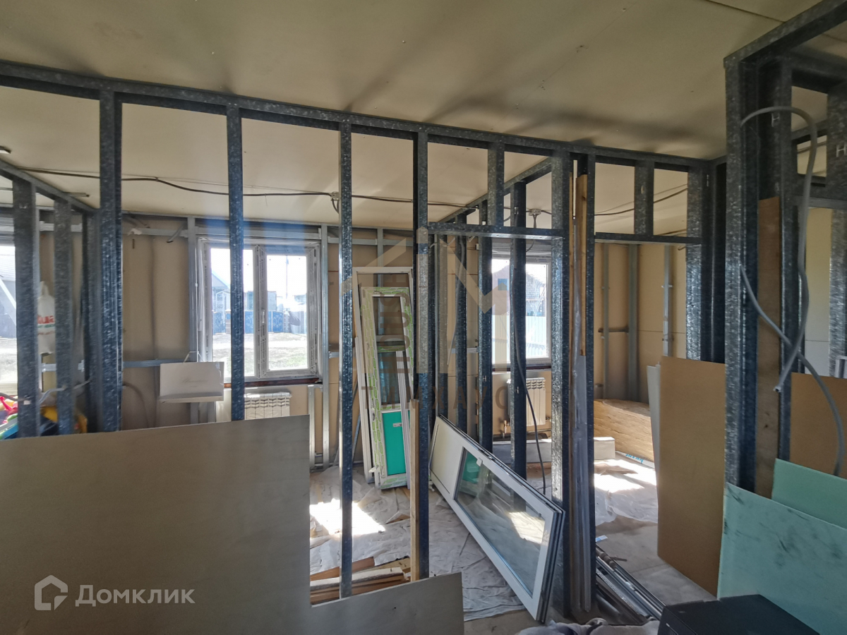 В доме выполнено комфортное и удобное зонирование: отдельная прихожая, вместительная кухня-гостиная, три изолированные комнаты и совмещенный санузел, установлены каркасы для внутренних перегородок и окна ПВХ.