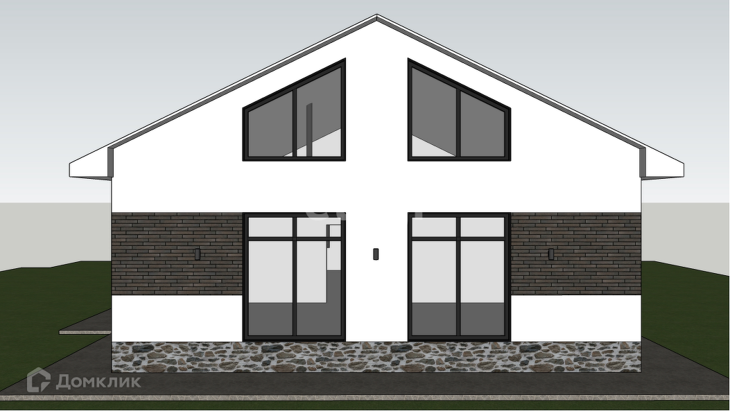 Дом имеет ленточный фундамент, стены из арболита (древобетон), крыша - профлист 0,8 мм.