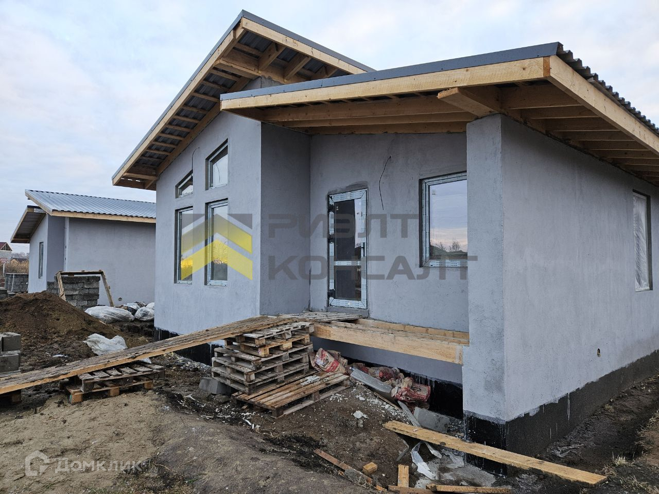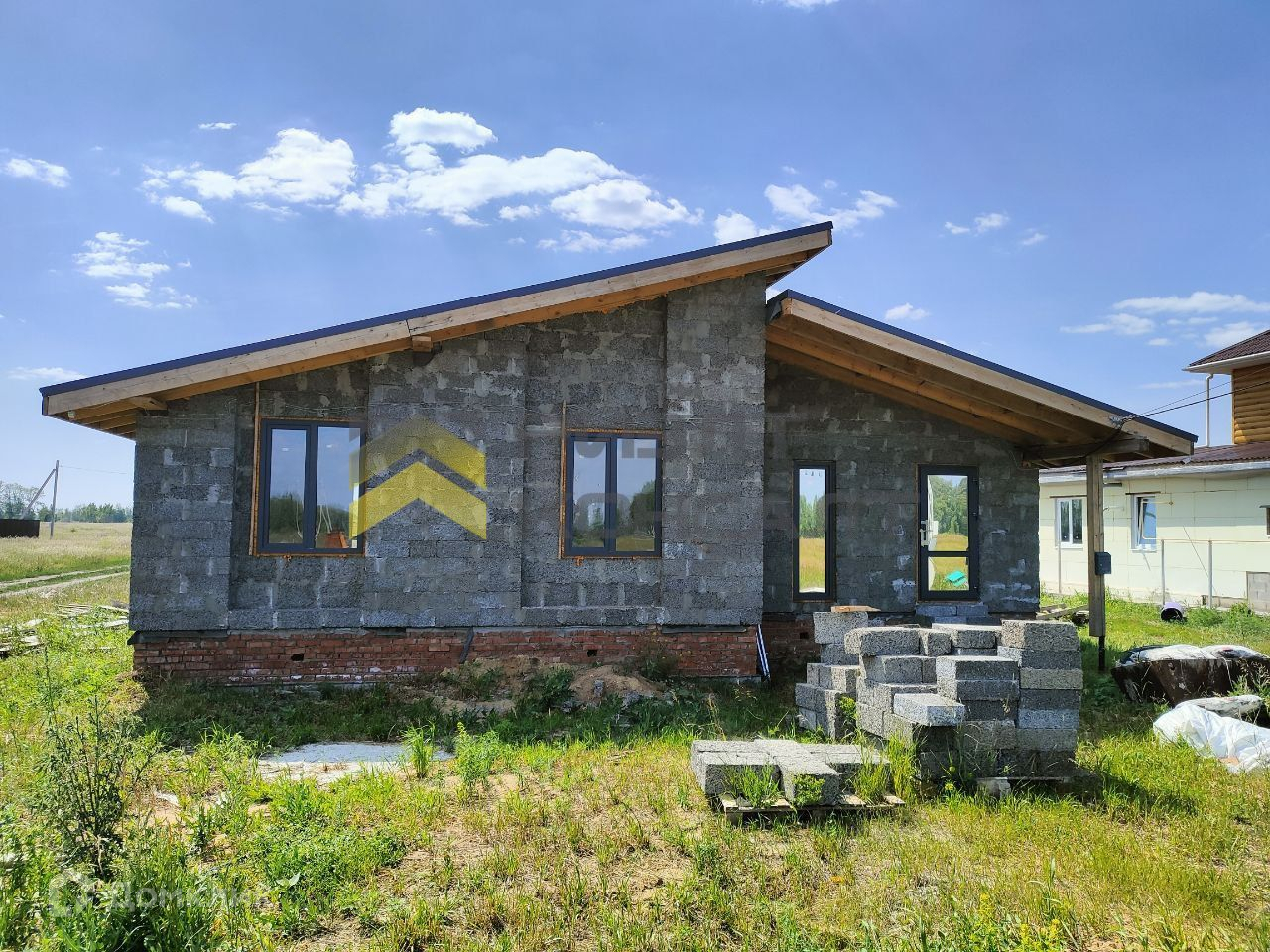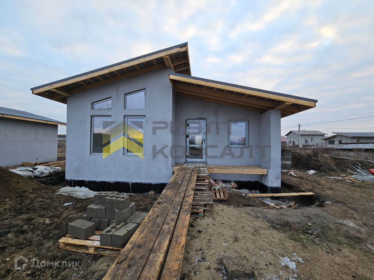Дом на бетонном фундаменте, выполнен из арболита, оштукатурены снаружи и внутри. Кровля утеплена и накрыта металлочерепицей. В доме произведена разводка системы отопления (теплый водяной пол), сделана стяжка пола, разведена электропроводка, все коммуникации заведены (газ, вода, электроэнергия, септик). Три жилые комнаты.