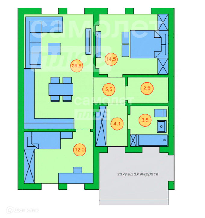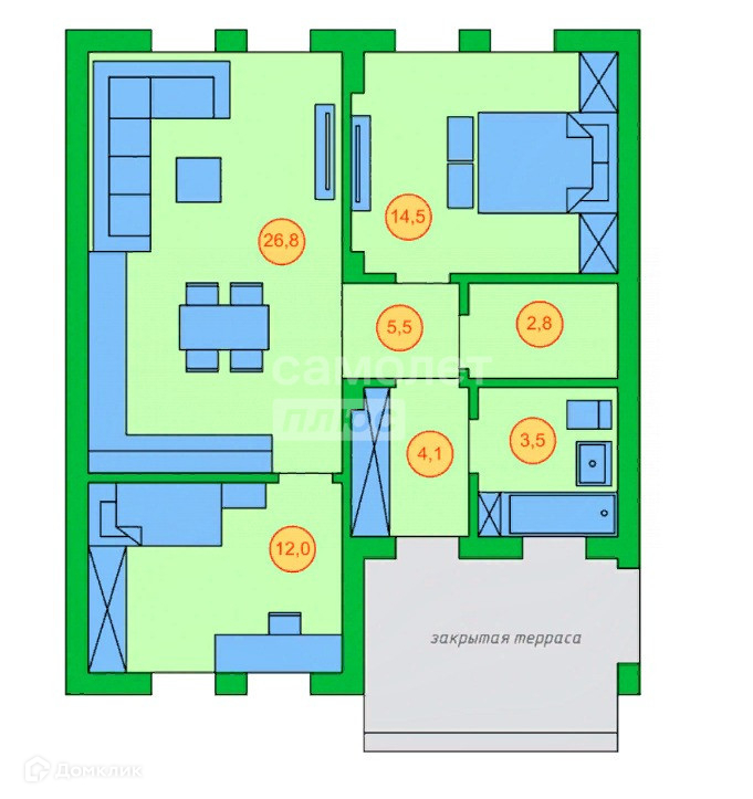 Общая площадь 80 м2