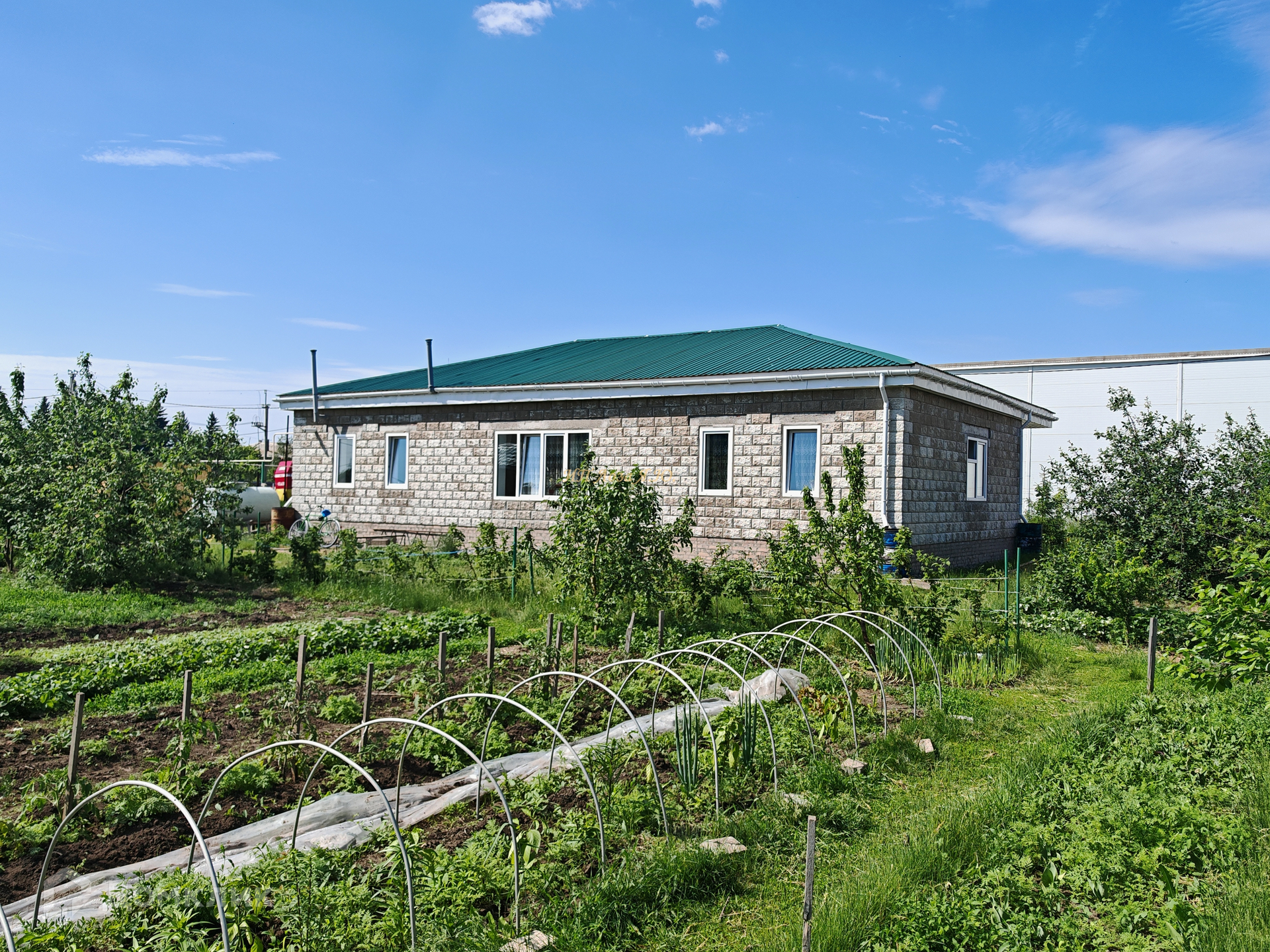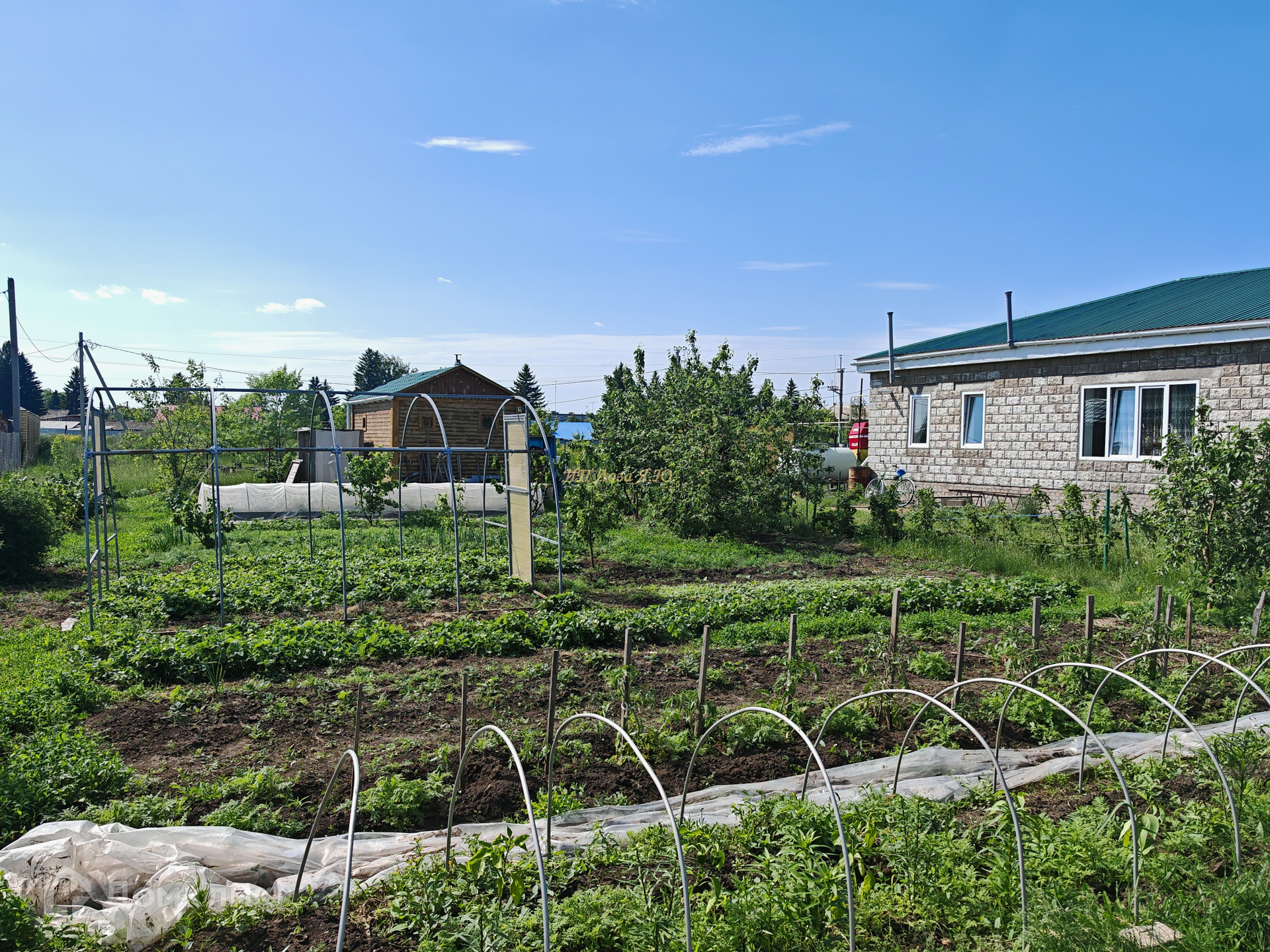 Много посадок, в основном молодняк: груша, яблони, абрикосы, смородина всех цветов, жимолость, облепиха, сливы, клубника, малина, вишня, елочки.