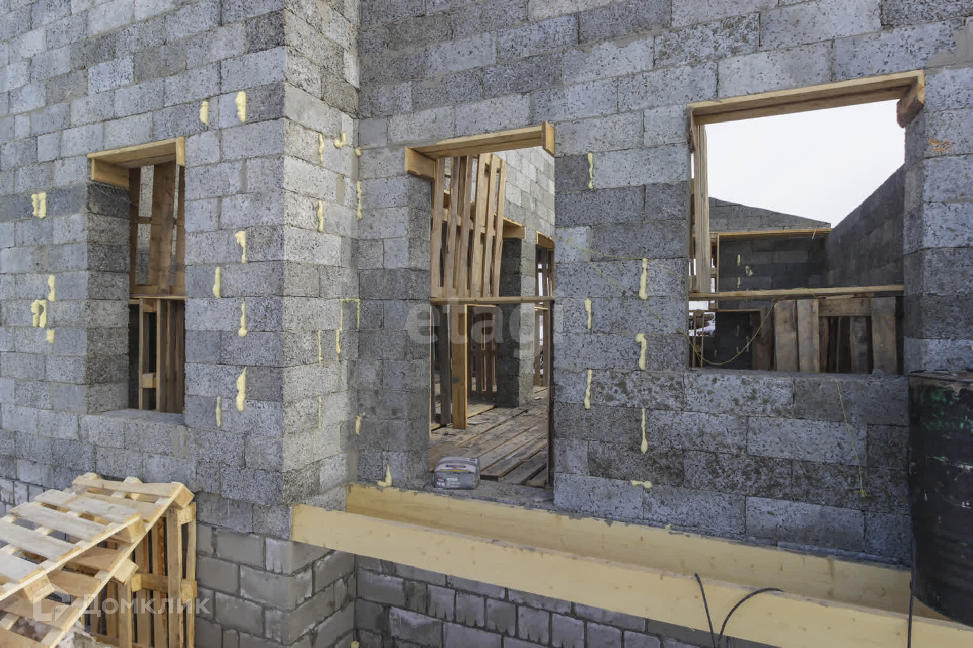 Отделка предчистовая - стены оштукатурены, межкомнатные перегородки, дом имеет ленточный фундамент.
