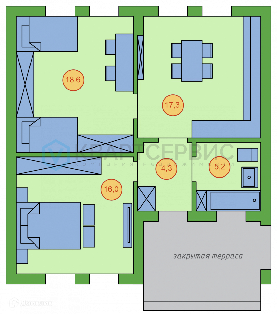 Общая площадь 62 м2