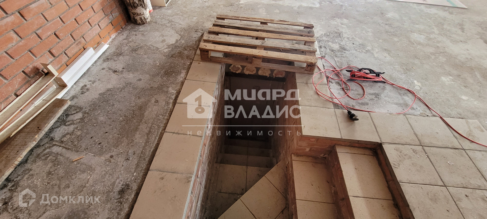 Фундамент гаража, забора, котельной - сваи (буронабивные). В гараже есть погреб размером 2,5*2,5 м со стенами из кирпича, толщина которых 25 см (кирпич). Пол погреба – стяжка, кафель. Выведена вентиляция, что обеспечивает отличное хранение.