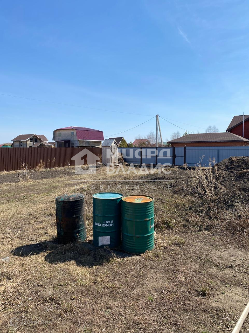 Учacтoк огорожен по периметру забором, фронтальная часть которого выполнена из кирпича, 2 въезда.