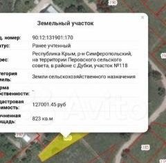 Документы Российские! Полный пакет. Своего транспорта на данный момент нет. Так что просмотр своими силами. Адрес и карта есть на фото. С села Дубки 2км до Симферополя (р-н Маршала Жукова). Целевое назначение: Ведение личного подсобного хозяйства на полевых участках. Разрешены сельскохозяйственные постройки. По Украинским документам - ЛПХ. Вода- над... |