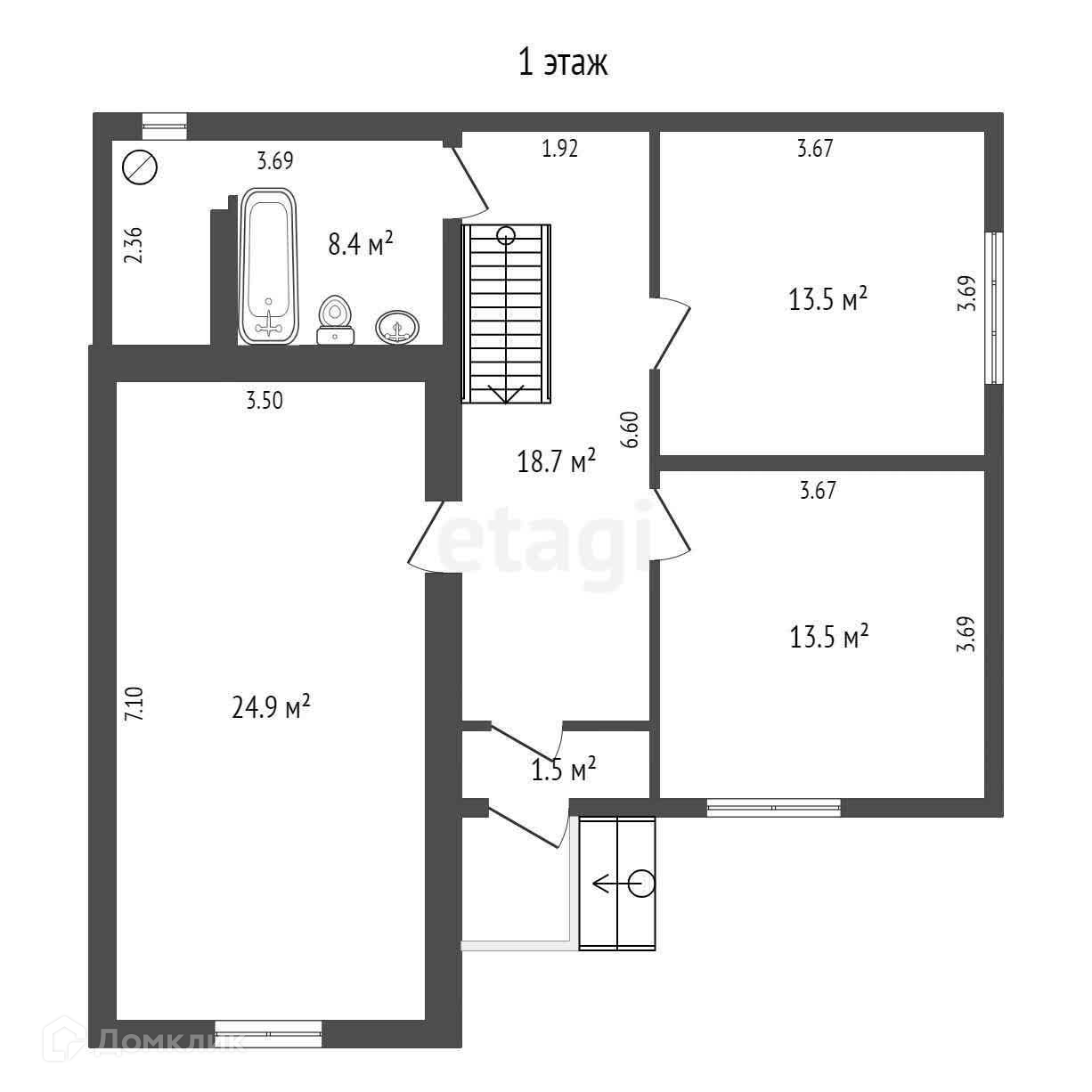 Полностью благоустроен: канализация, водопровод и газовое отопление.